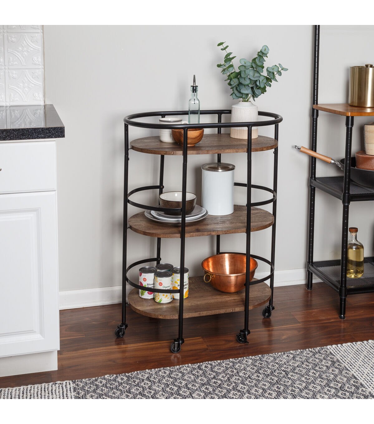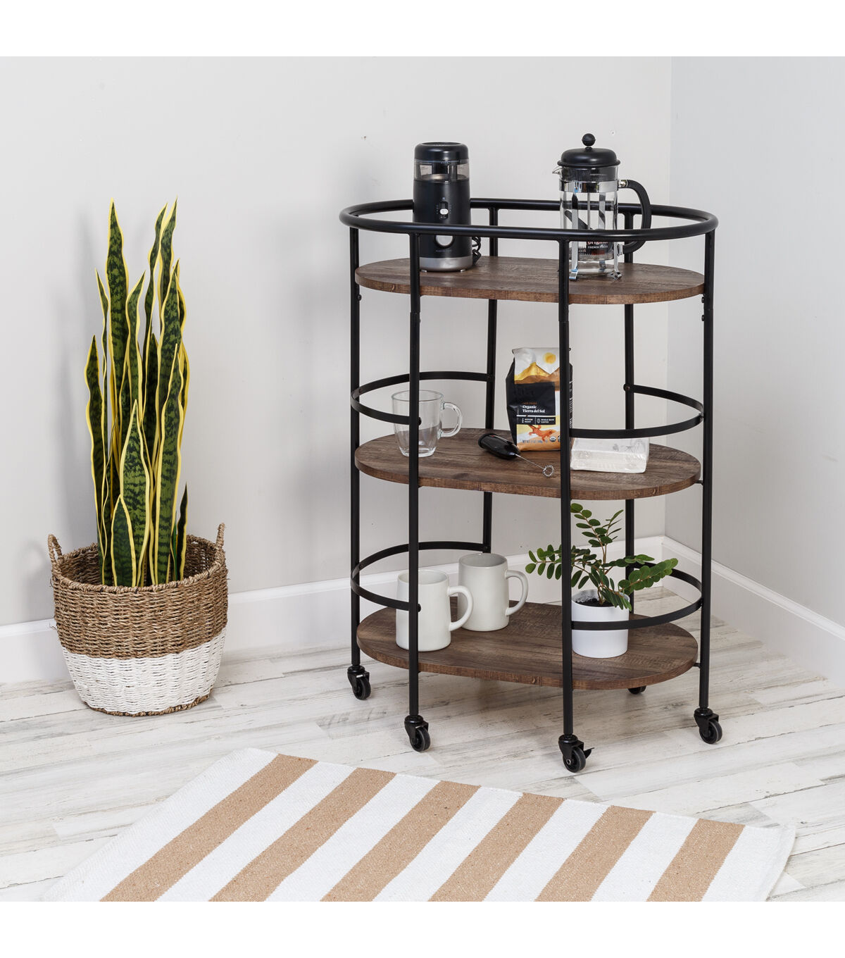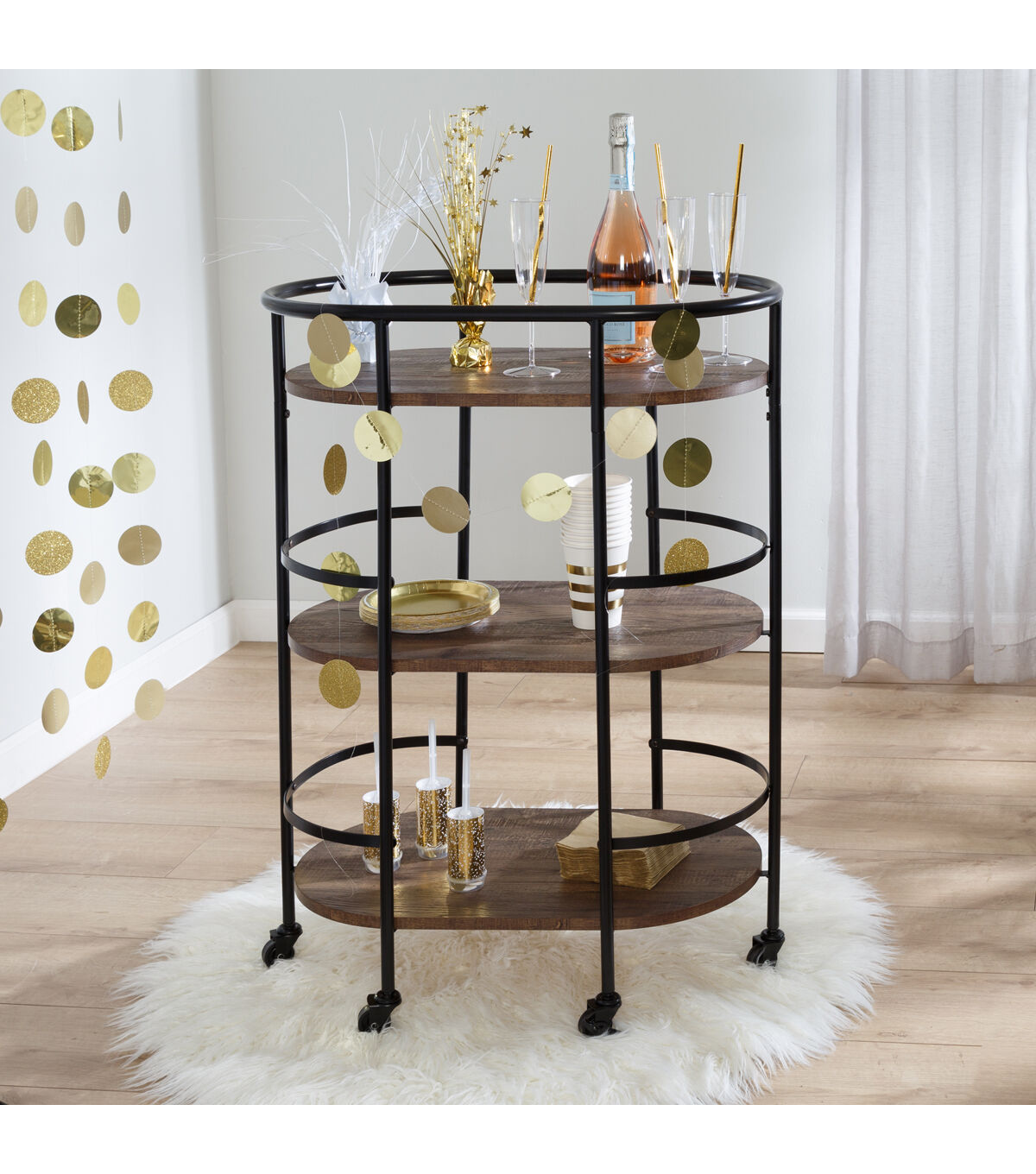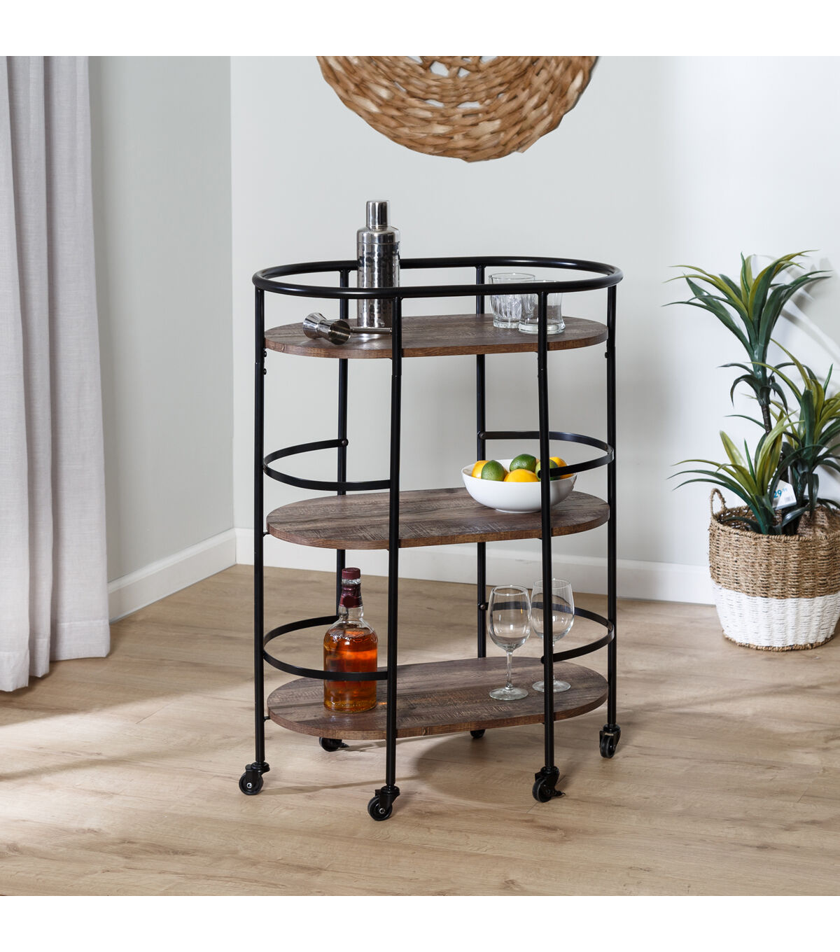 Honey Can Do 35" Black 3 Tier Rolling Bar & Serving Cart