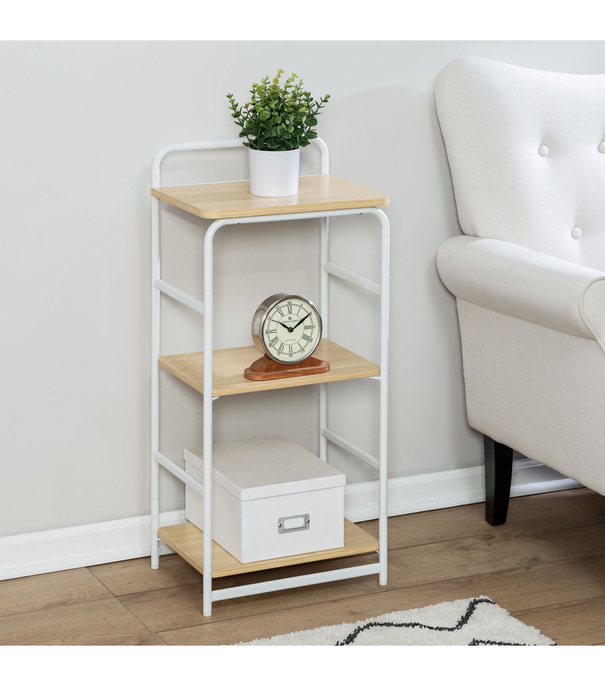 Honey Can Do 15.5" x 33.5" White & Natural 3 Tier Wood & Metal Shelf