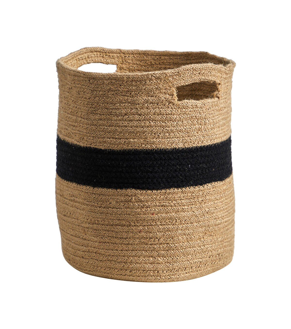 Nearly Natural 13.5" Handmade Natural Cotton Basket With Black Stripe