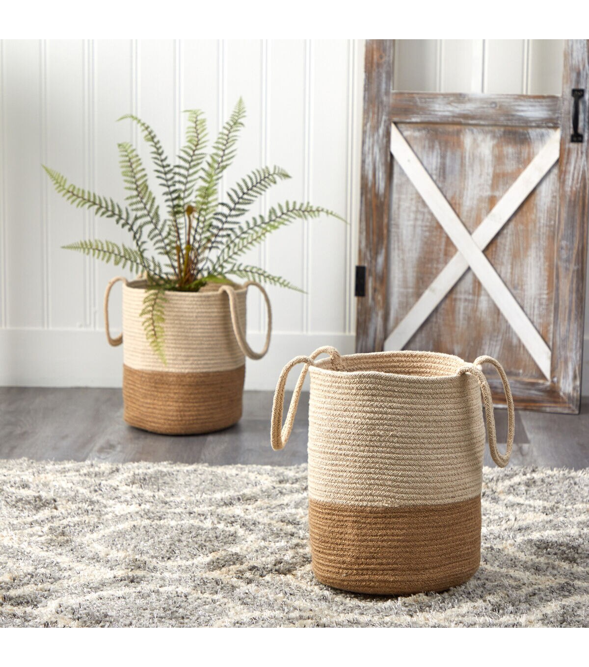 Nearly Natural 12" Handmade Natural Cotton Woven Basket