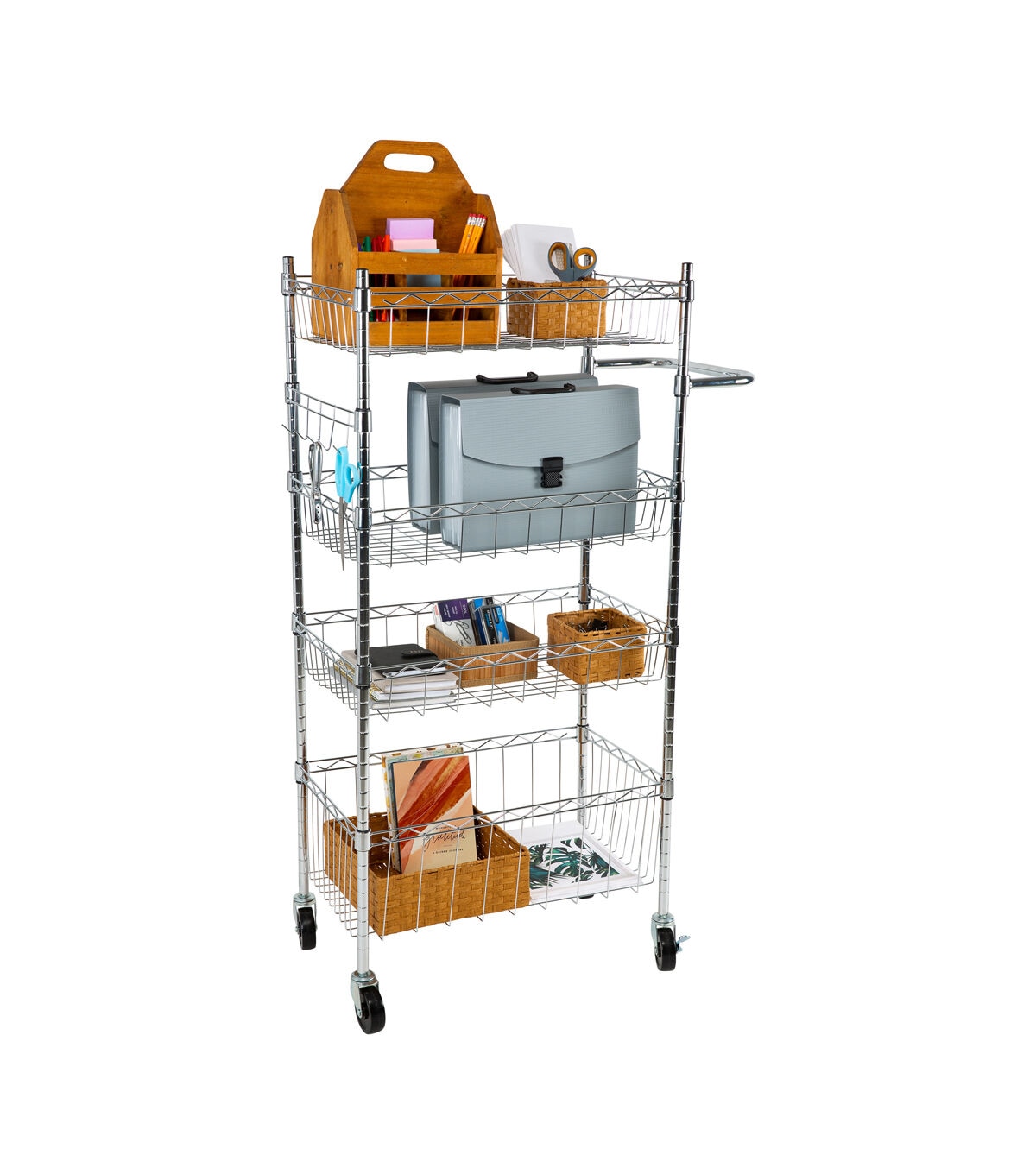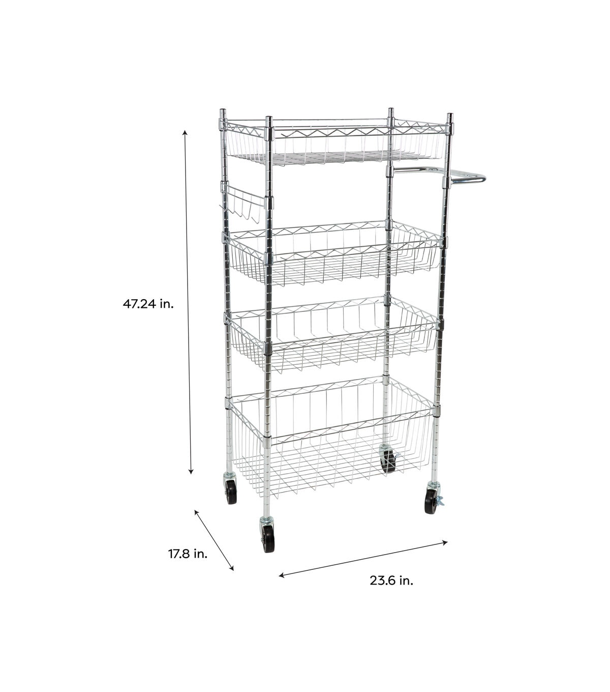 Organize It All 47" Silver 4 Tier Rolling Utility Cart With Baskets