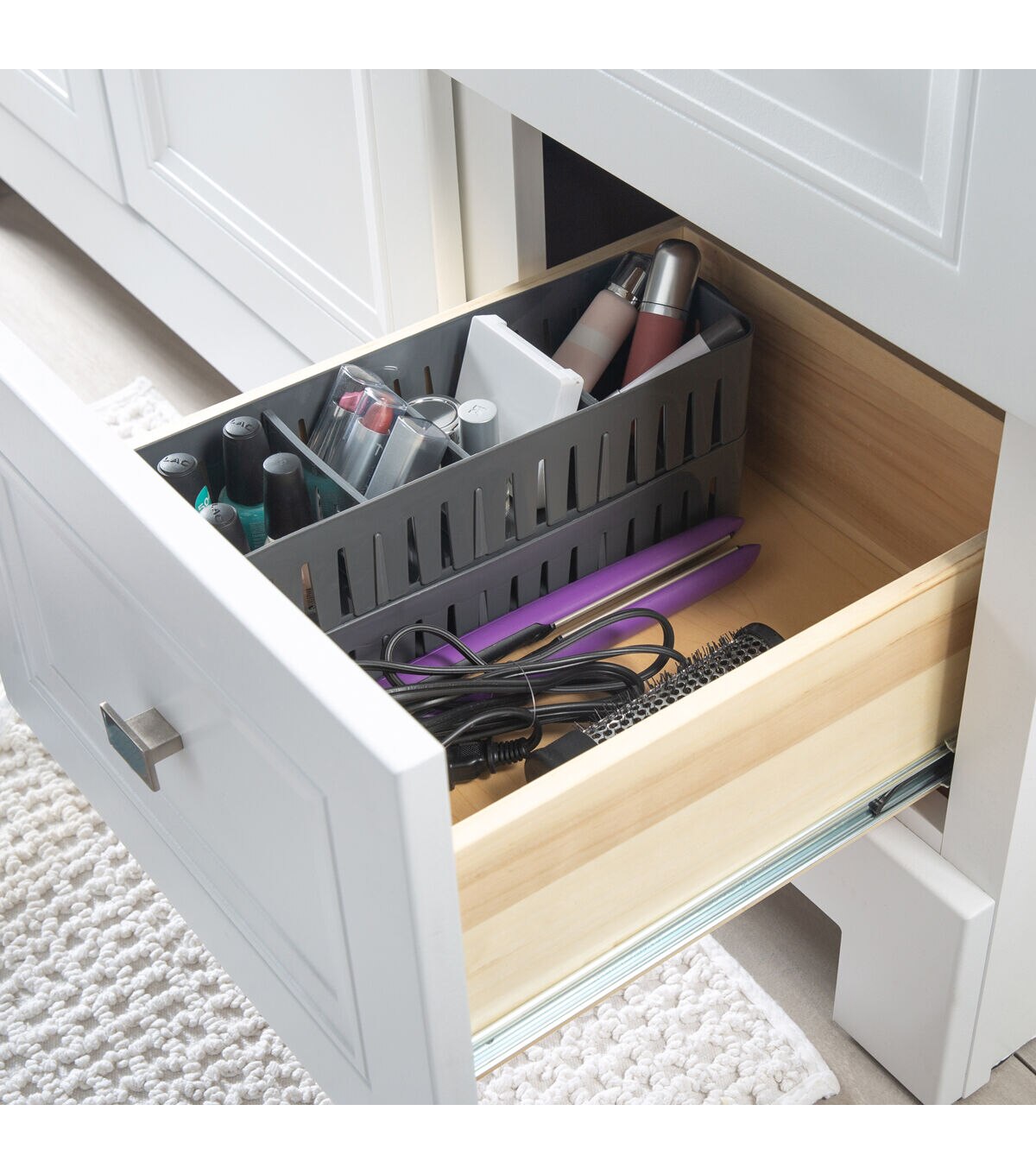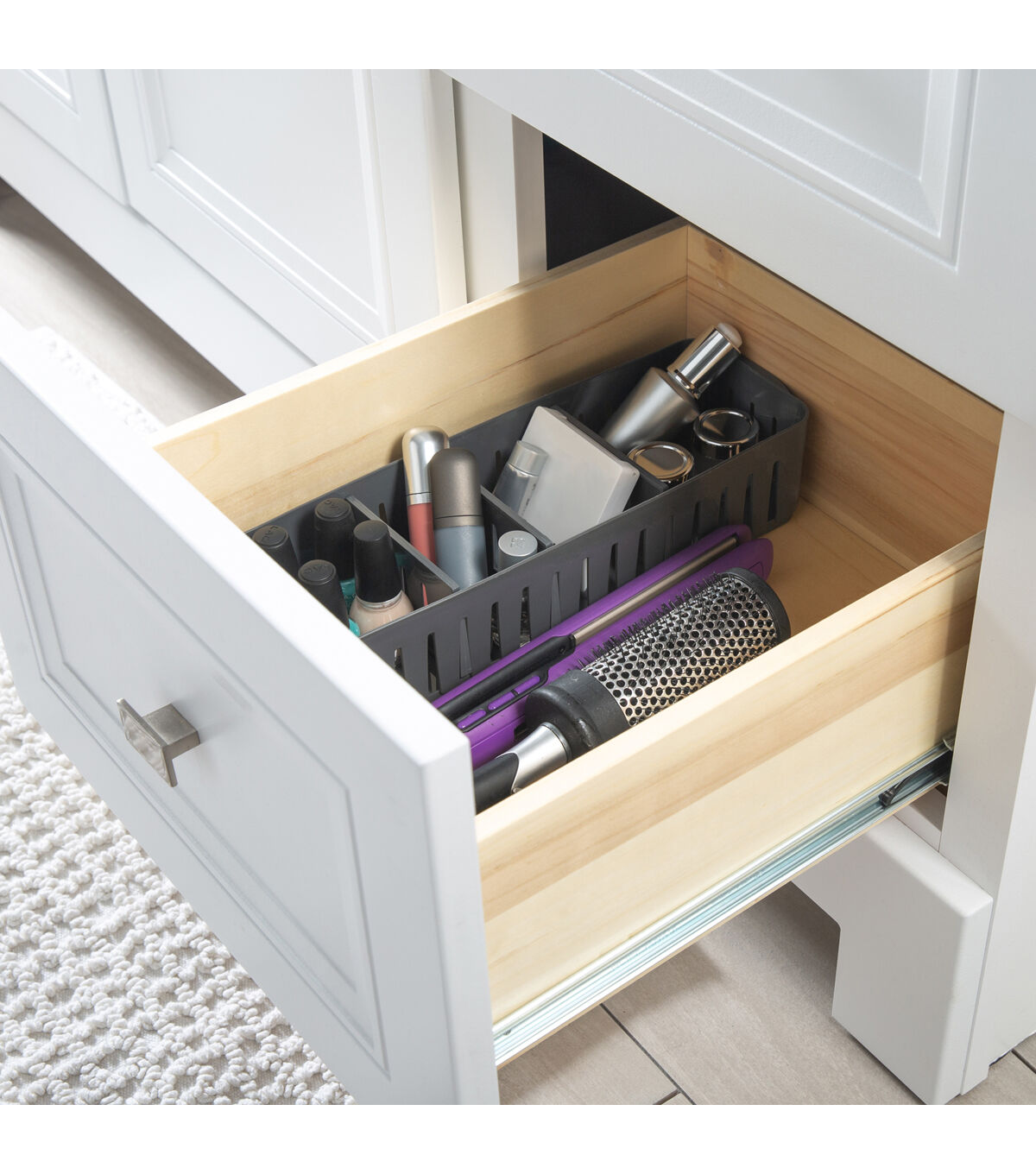 Simplify 12.5" Gray Stackable Organizer Bin With Adjustable Dividers