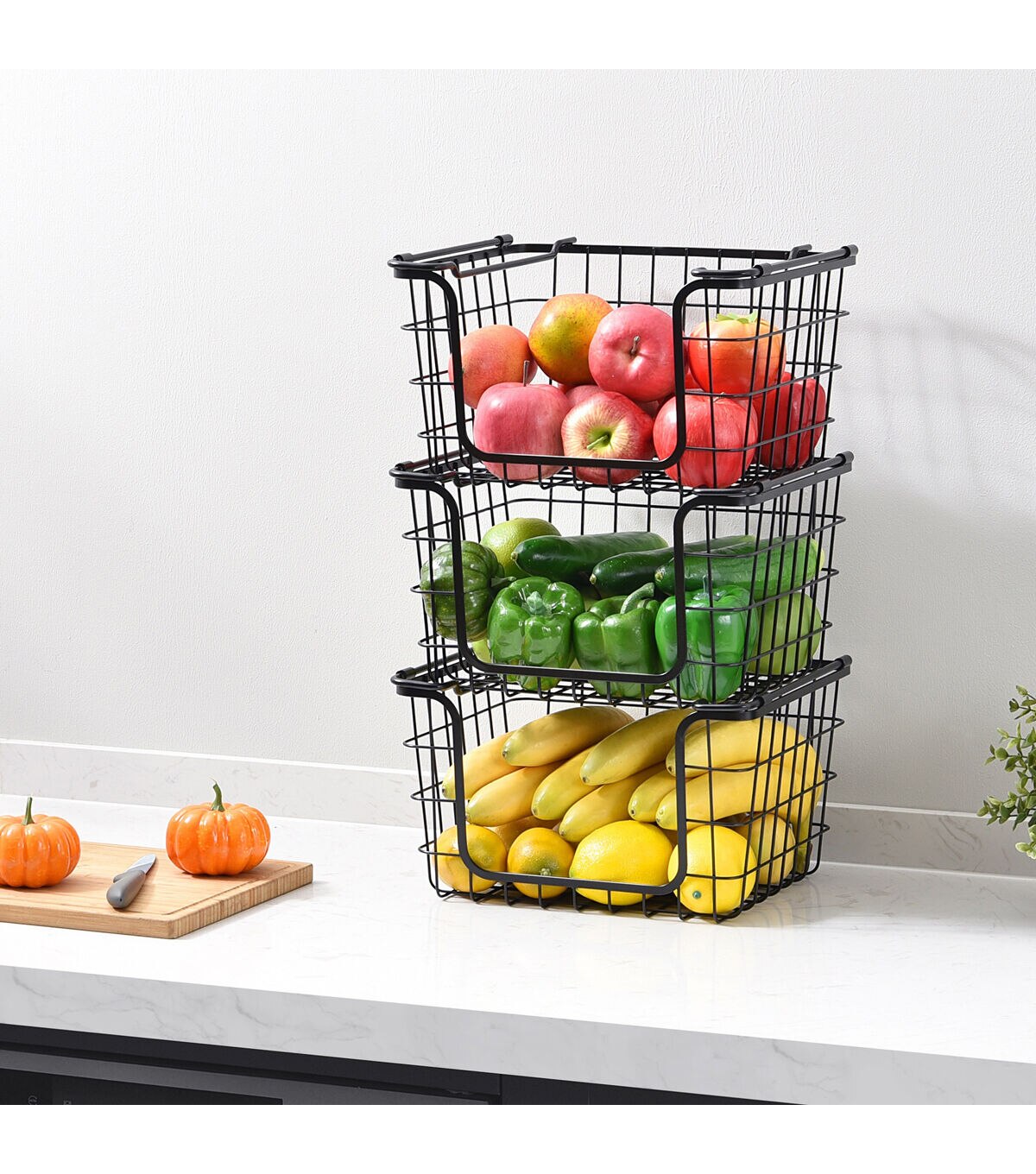 Oceanstar 12" x 10" Black Stackable Metal Wire Storage Baskets 3pk