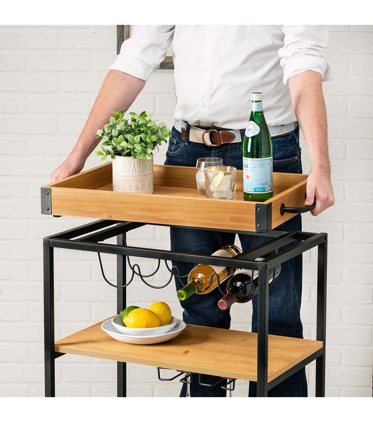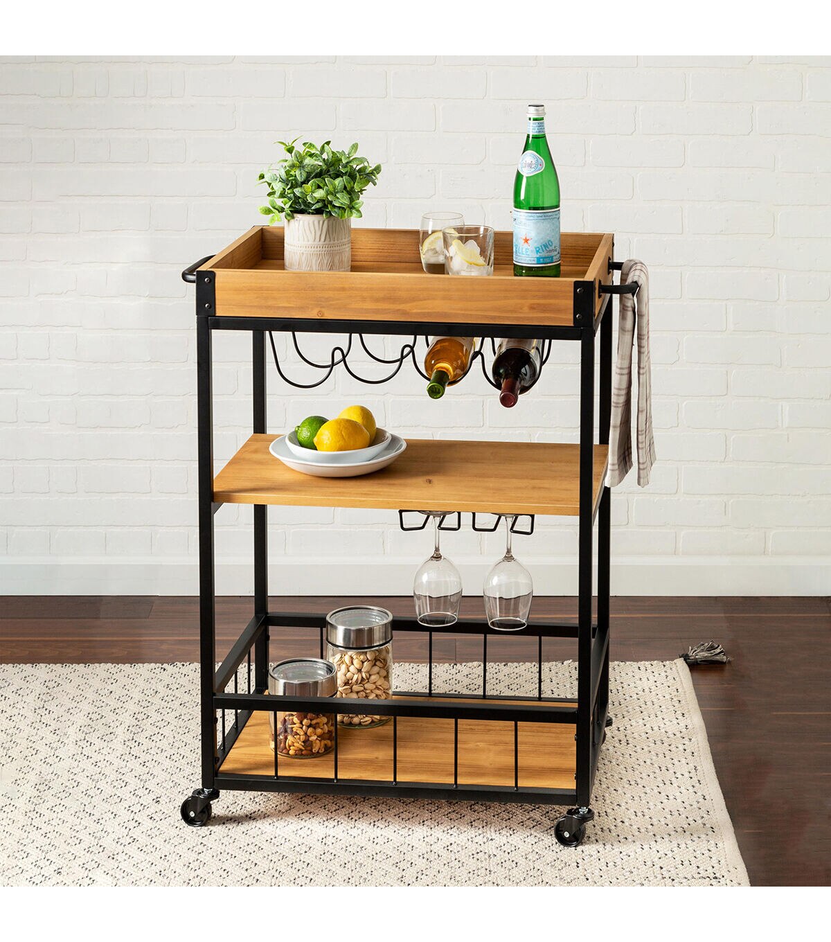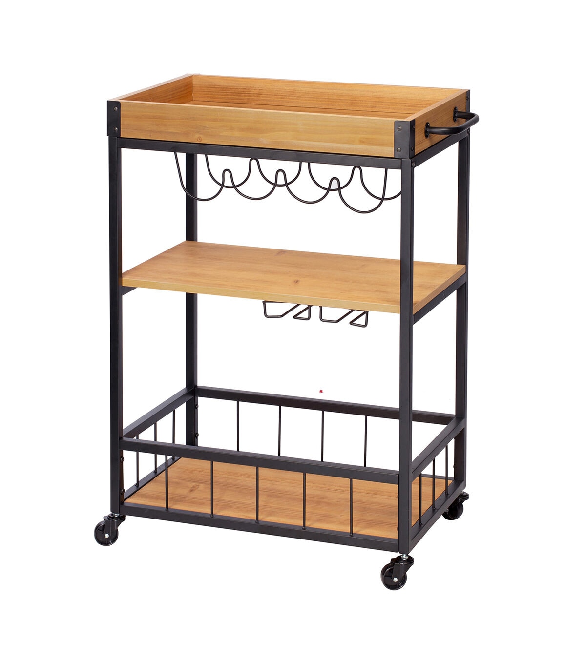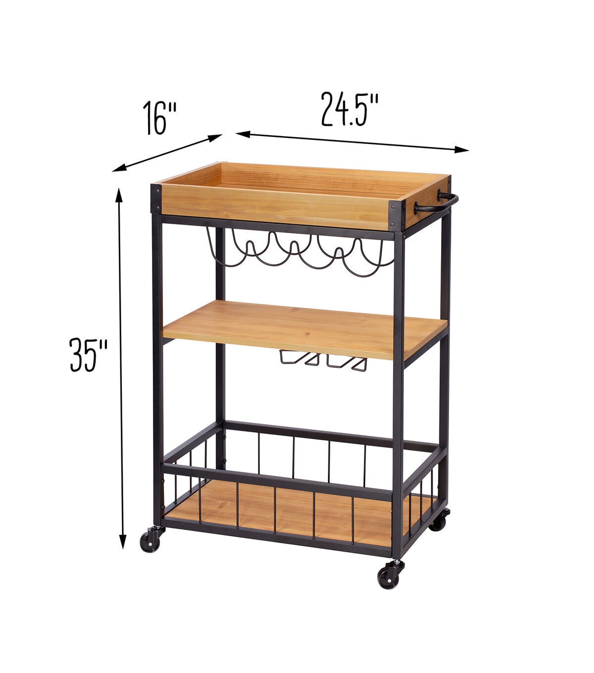 Honey Can Do 35" Black Industrial Bar Cart With Removable Serving Tray