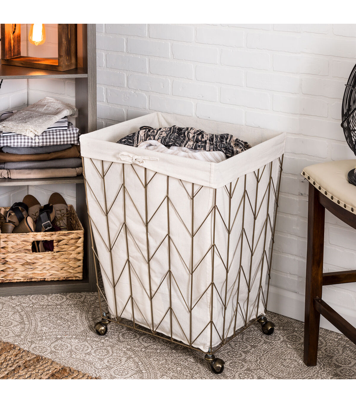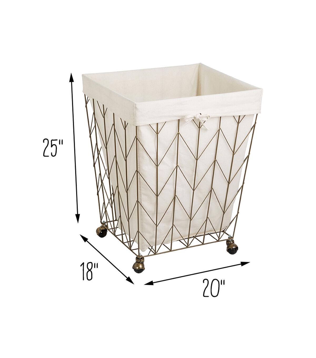 Honey Can Do 25" Bronze Chevron Wire Rolling Hamper With Canvas Liner