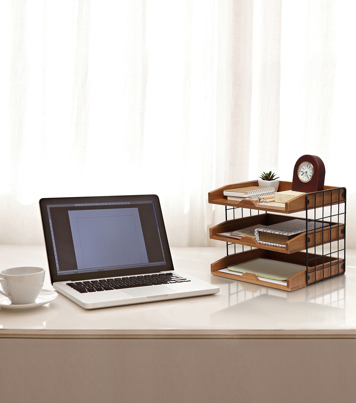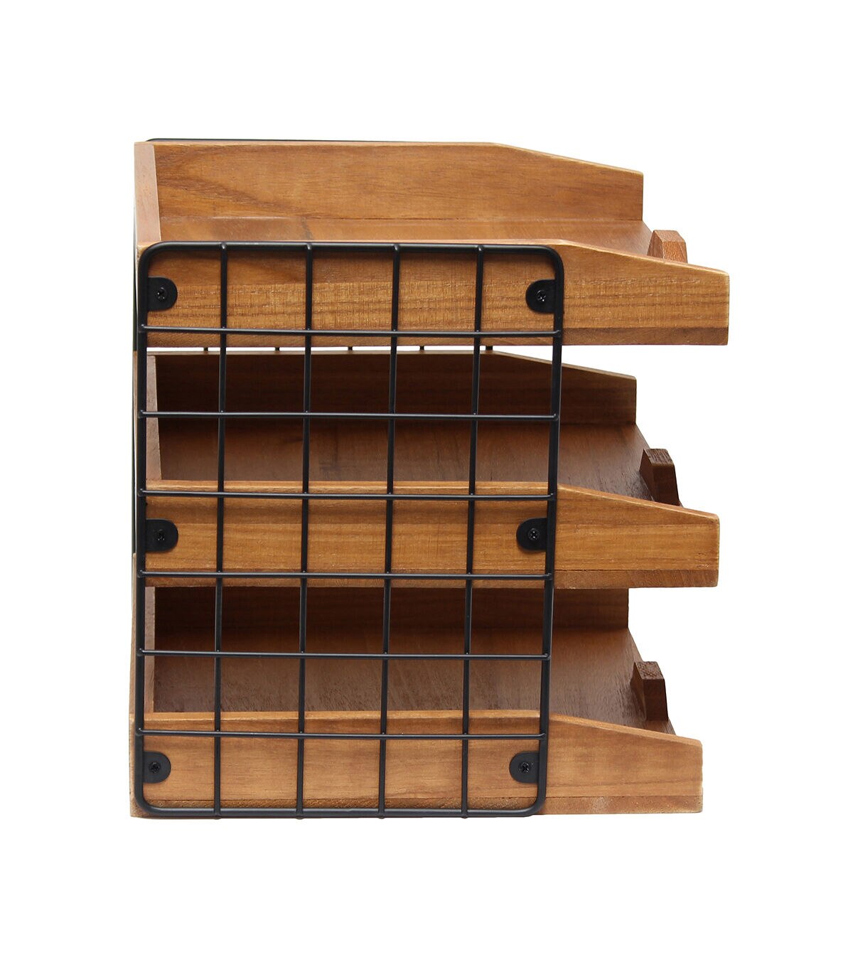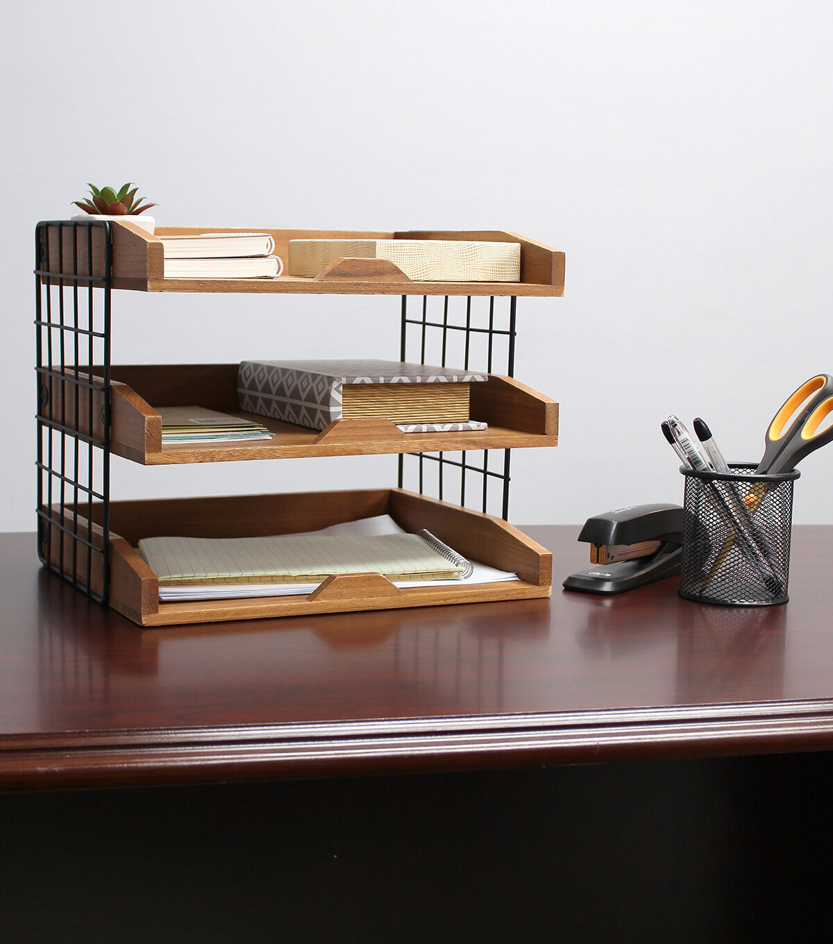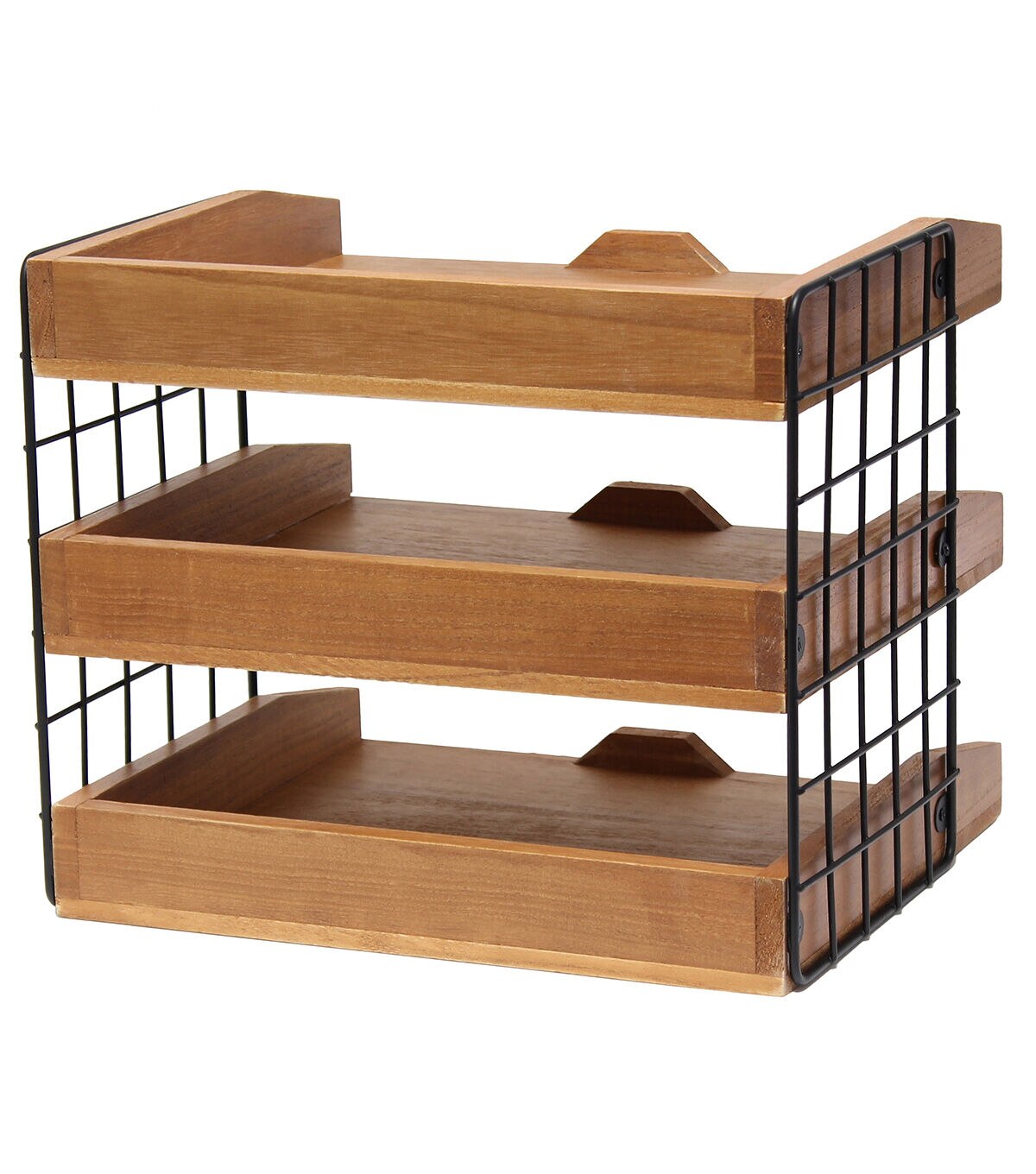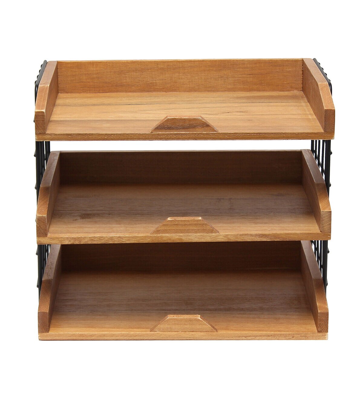 All The Rages Home Office Desk Organizer with 3 Shelves Natural Wood