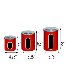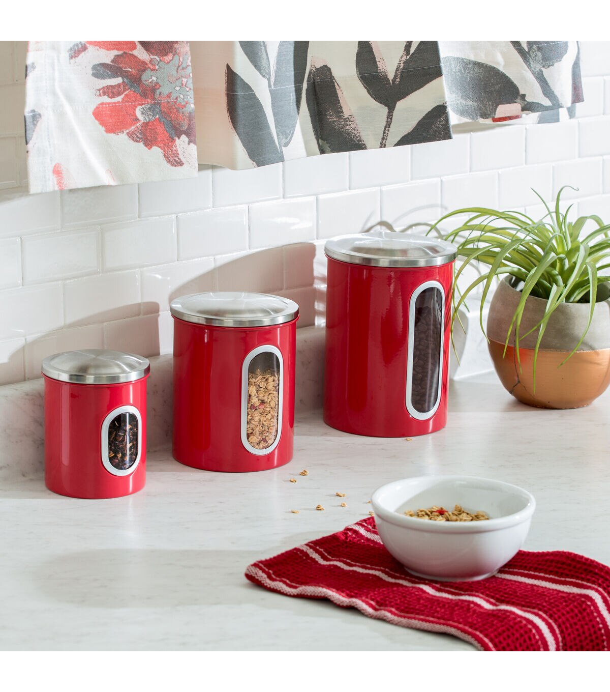 Honey Can Do 3ct Red Stainless Steel Canisters With Windows