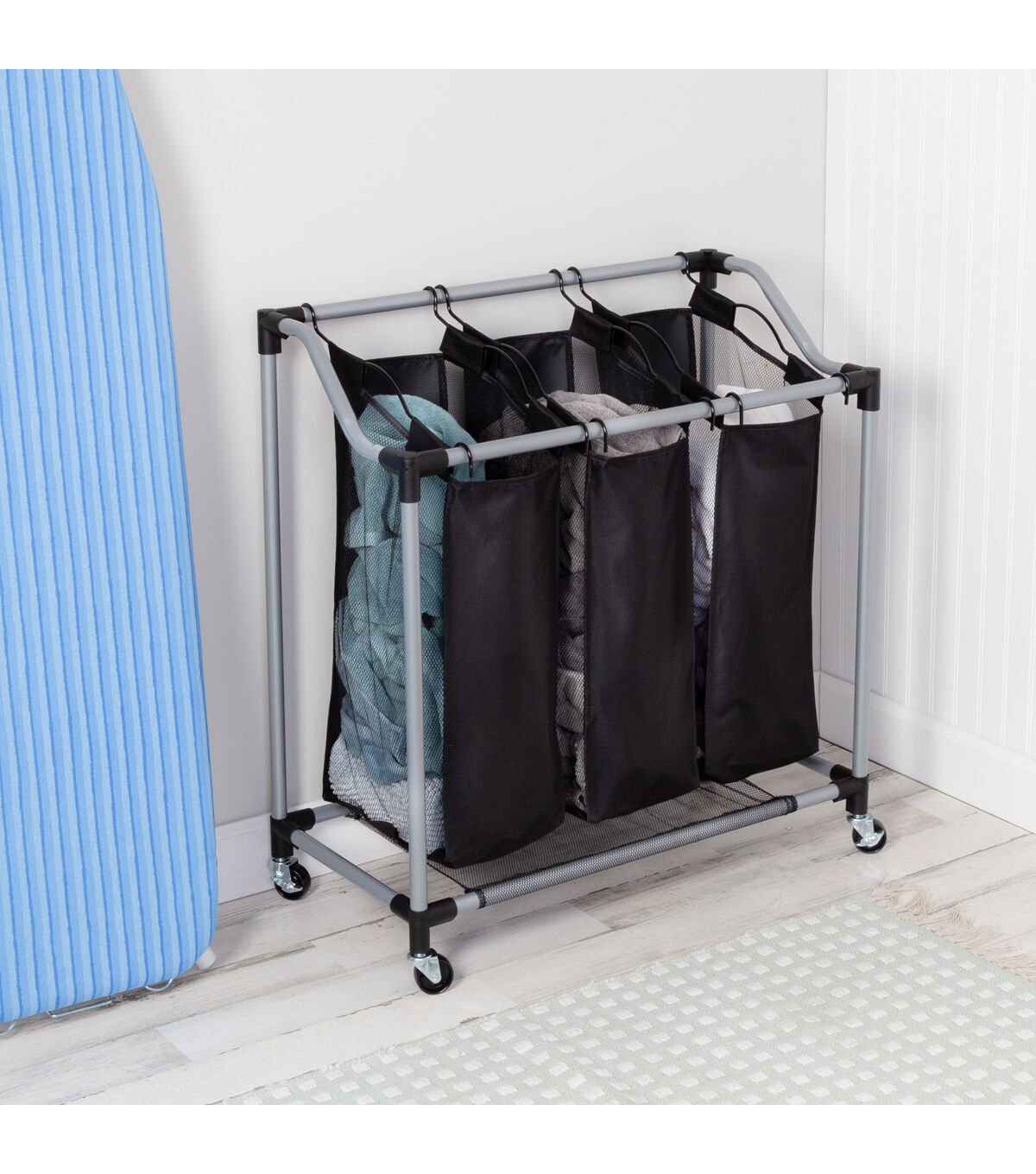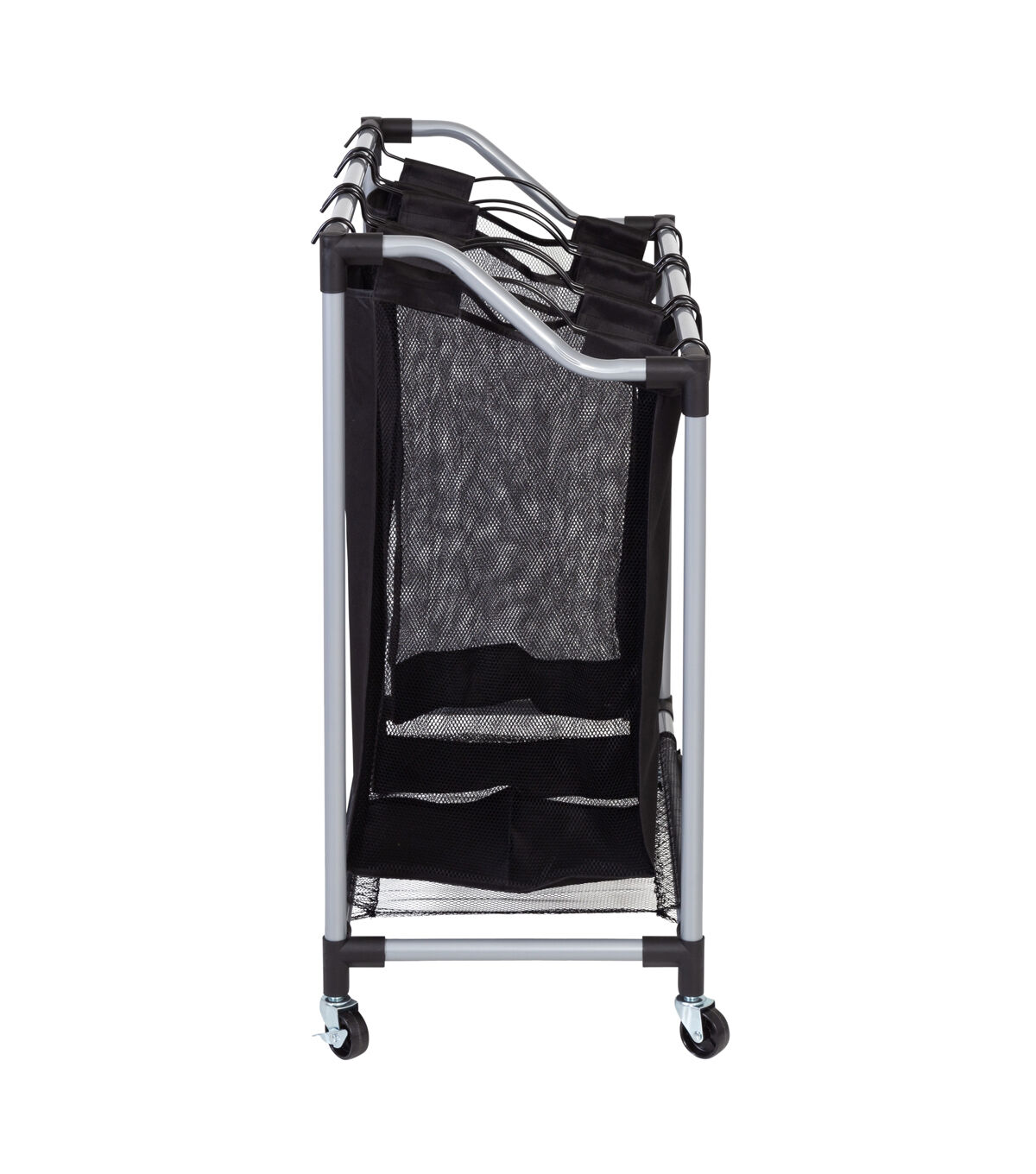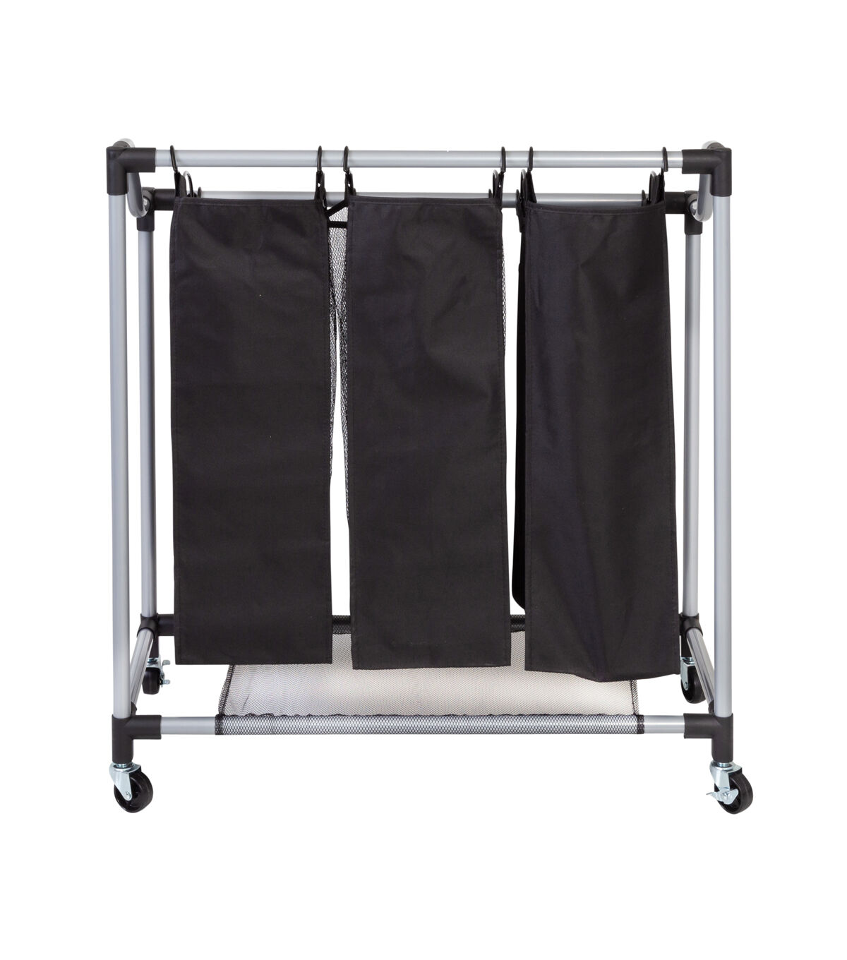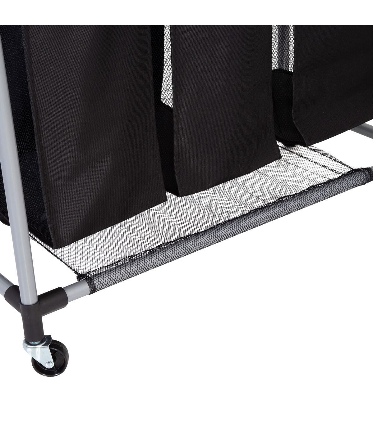 Honey Can Do 33" x 31" Black & Silver Rolling Triple Laundry Sorter