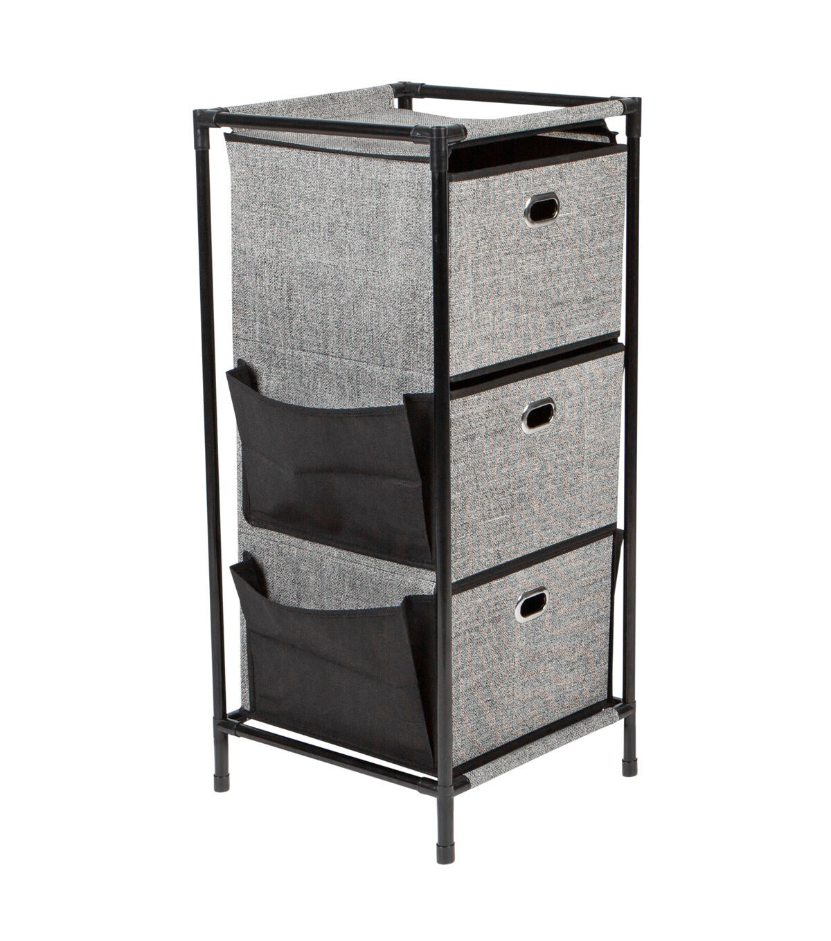 Simplify 30" Gray 3 Tier Storage Drawers With Black Side Pockets