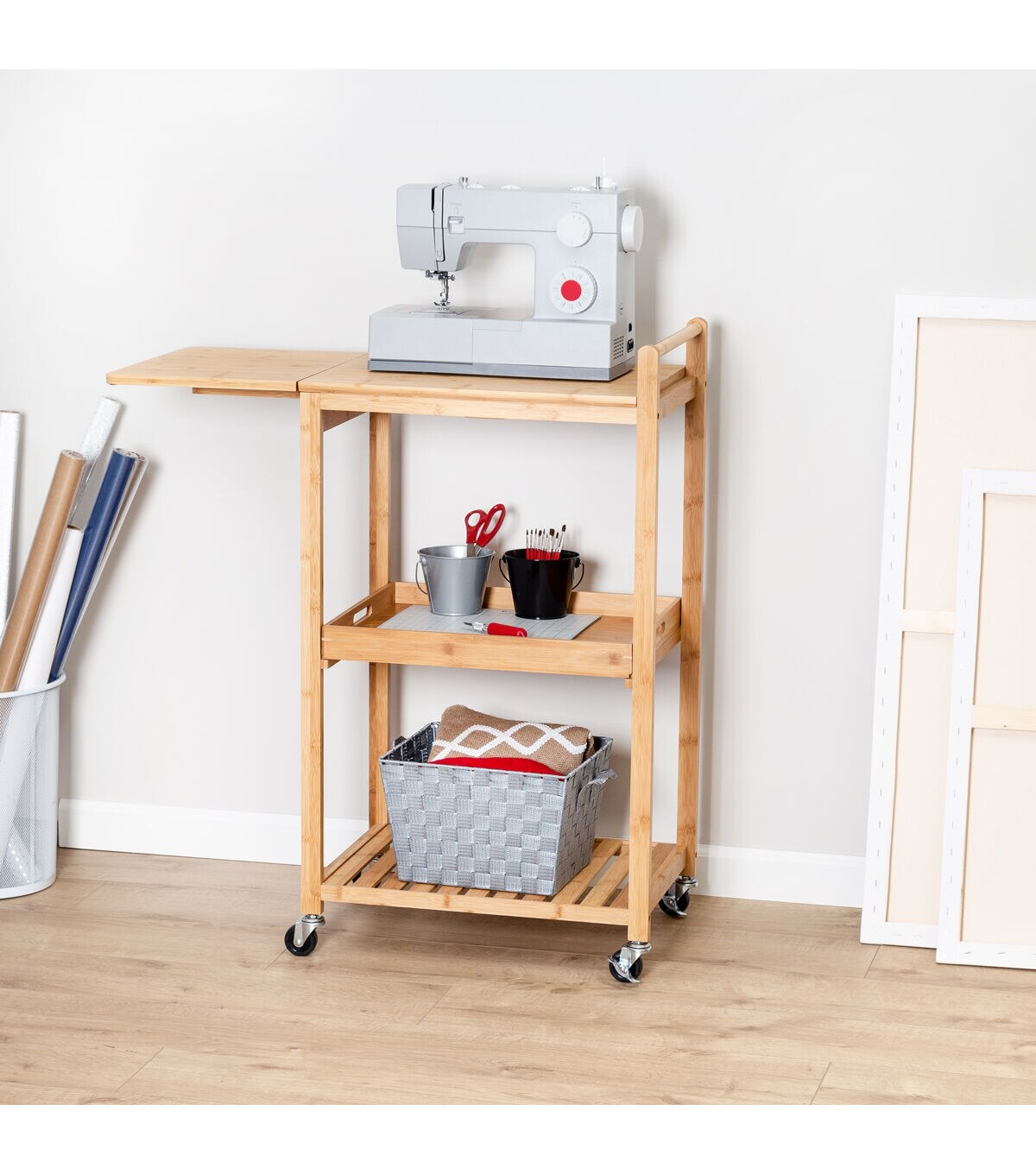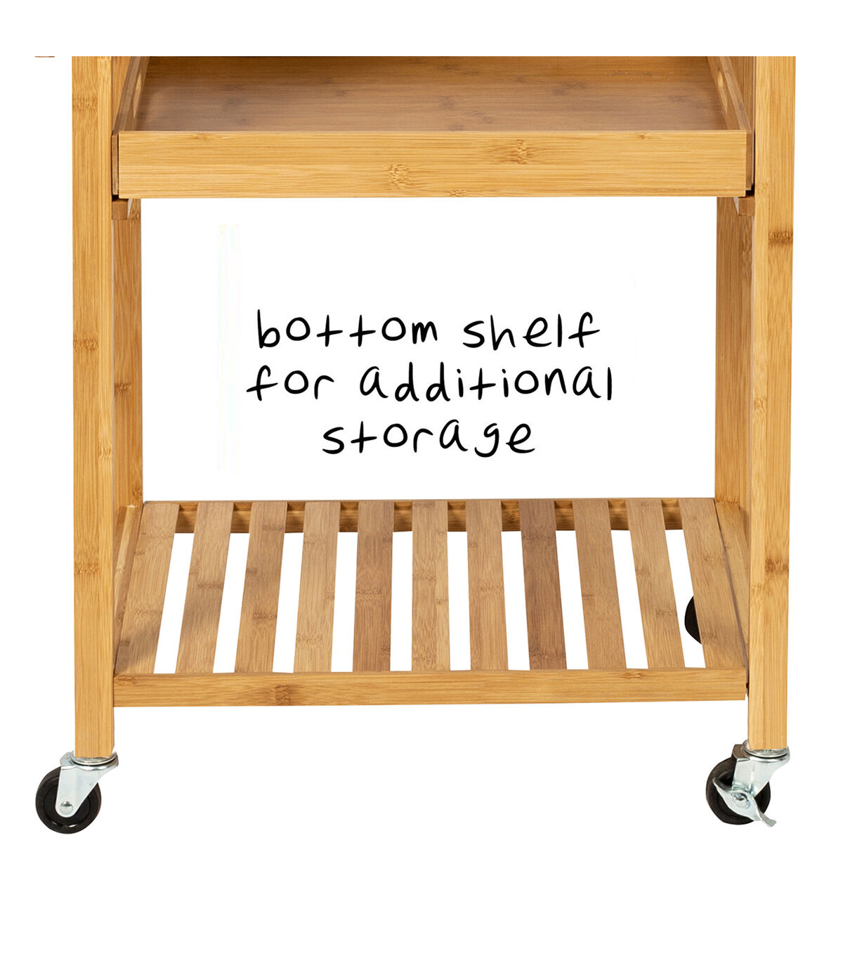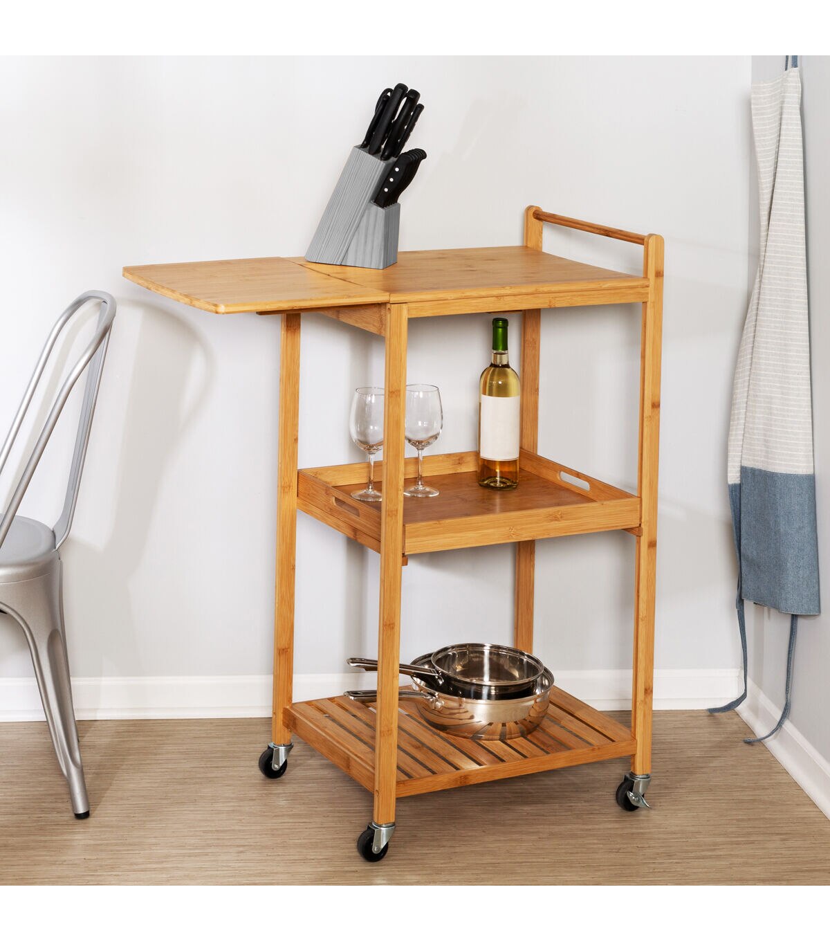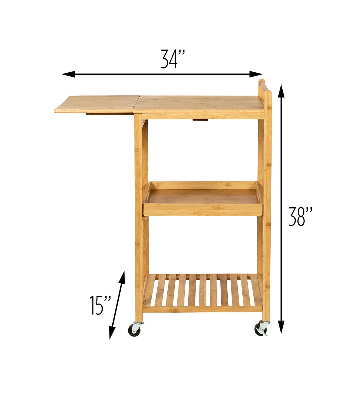 Honey Can Do 38" Natural Bamboo Kitchen Cart With Wheels & Drop Leaf