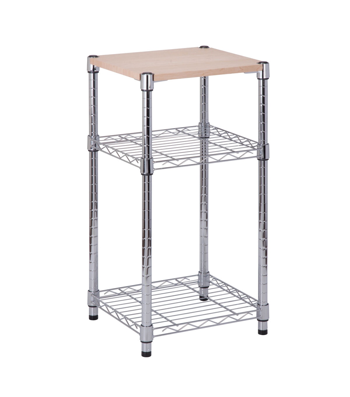 Honey Can Do 30" Chrome Wood 3 Tier Adjustable Shelving Unit