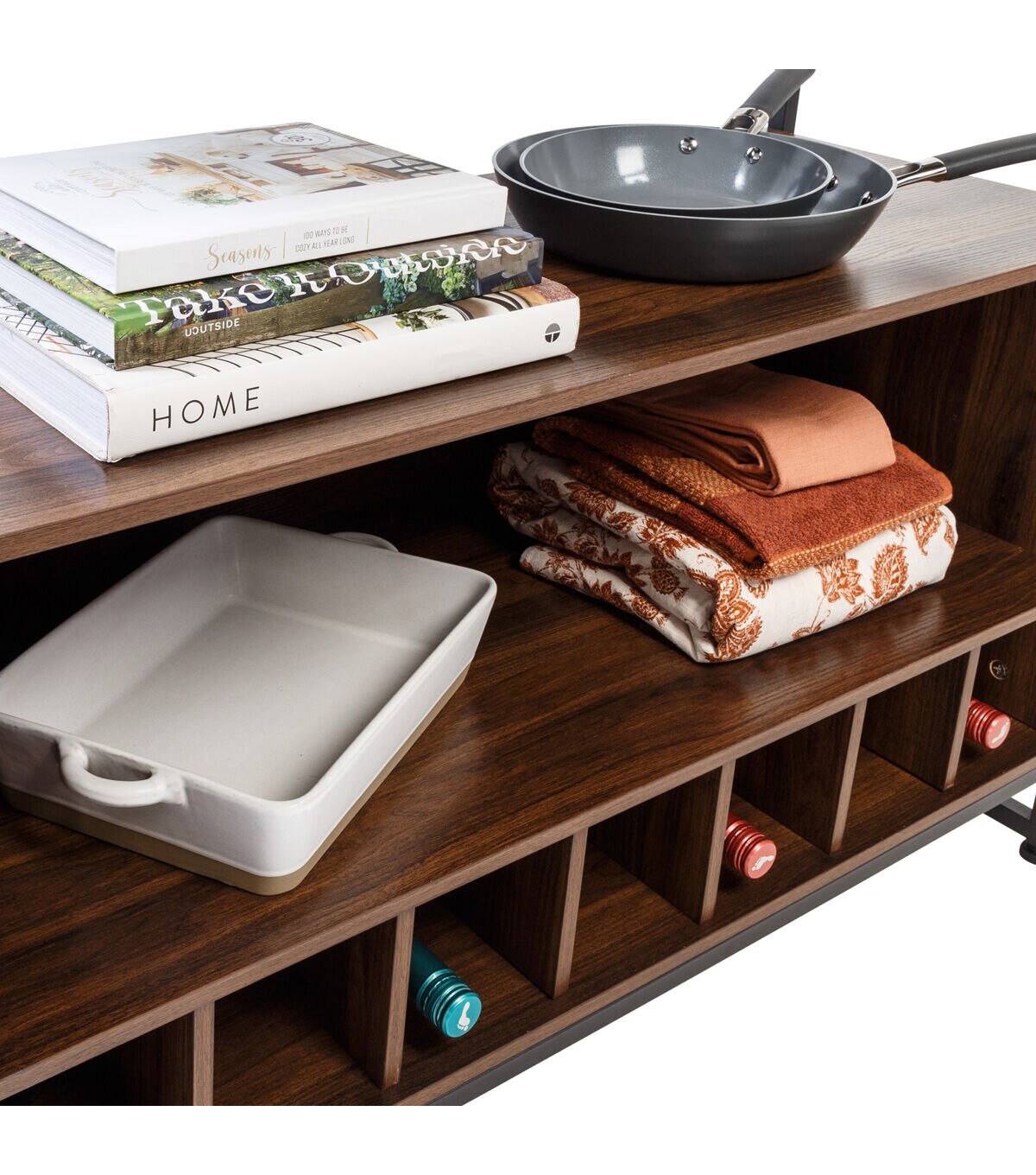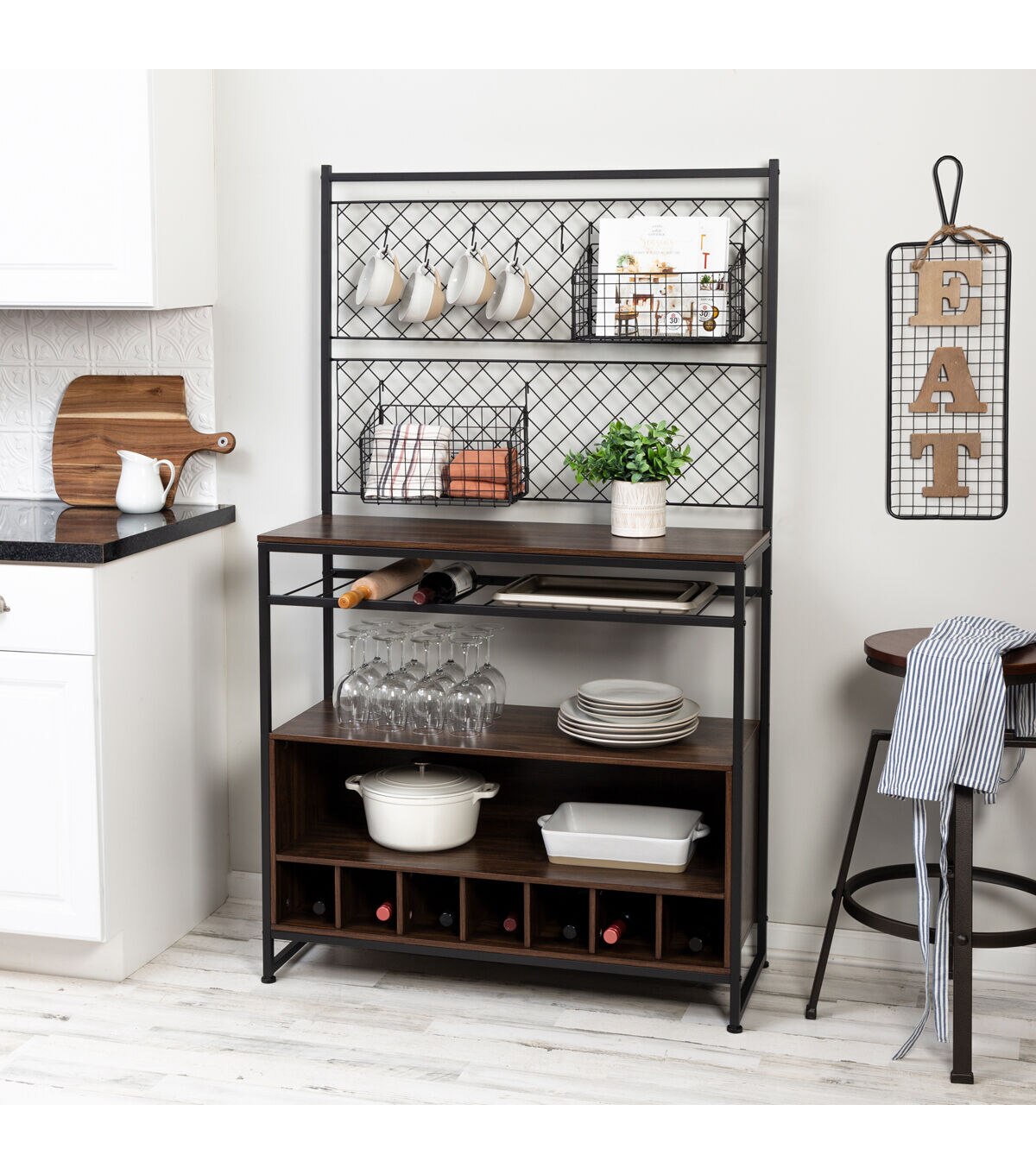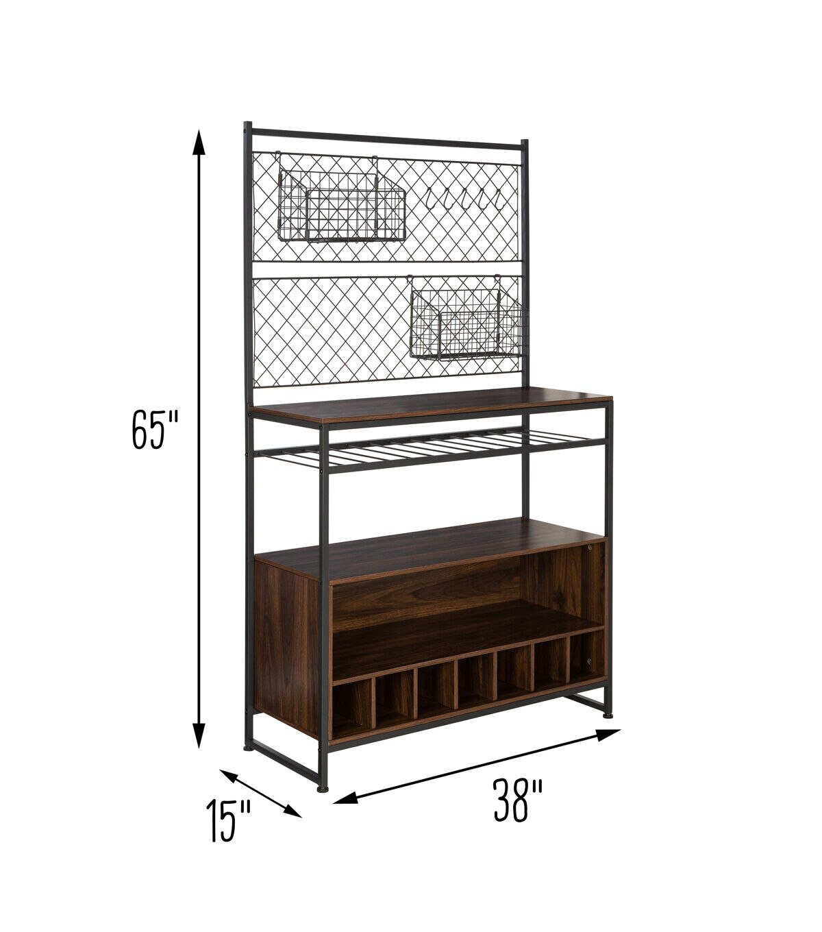 Honey Can Do 65" Black & Walnut Kitchen Bakers Rack With Wine Storage