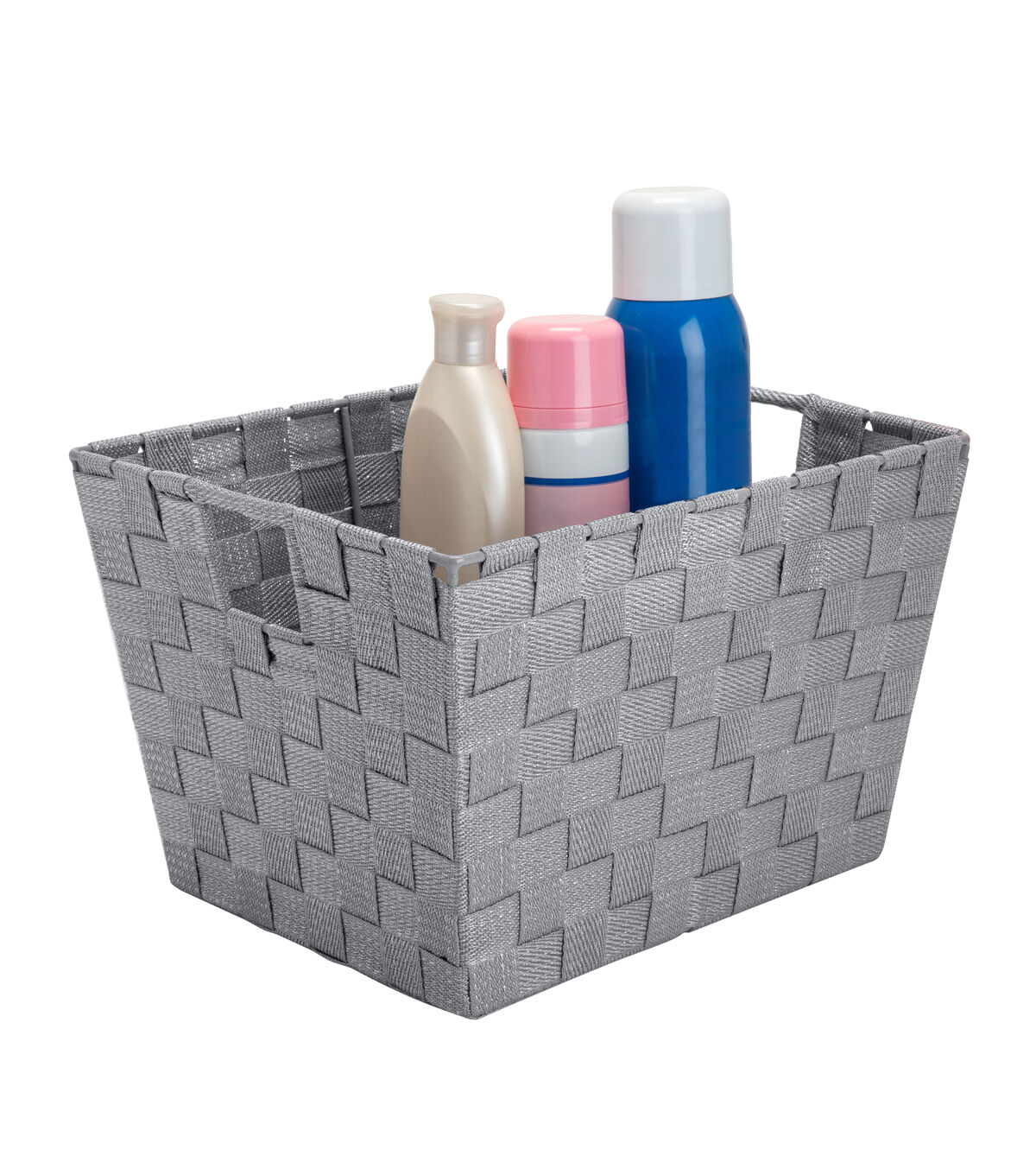 Simplify 10" x 8" Gray Lurex Striped Woven Storage Bin With Handles