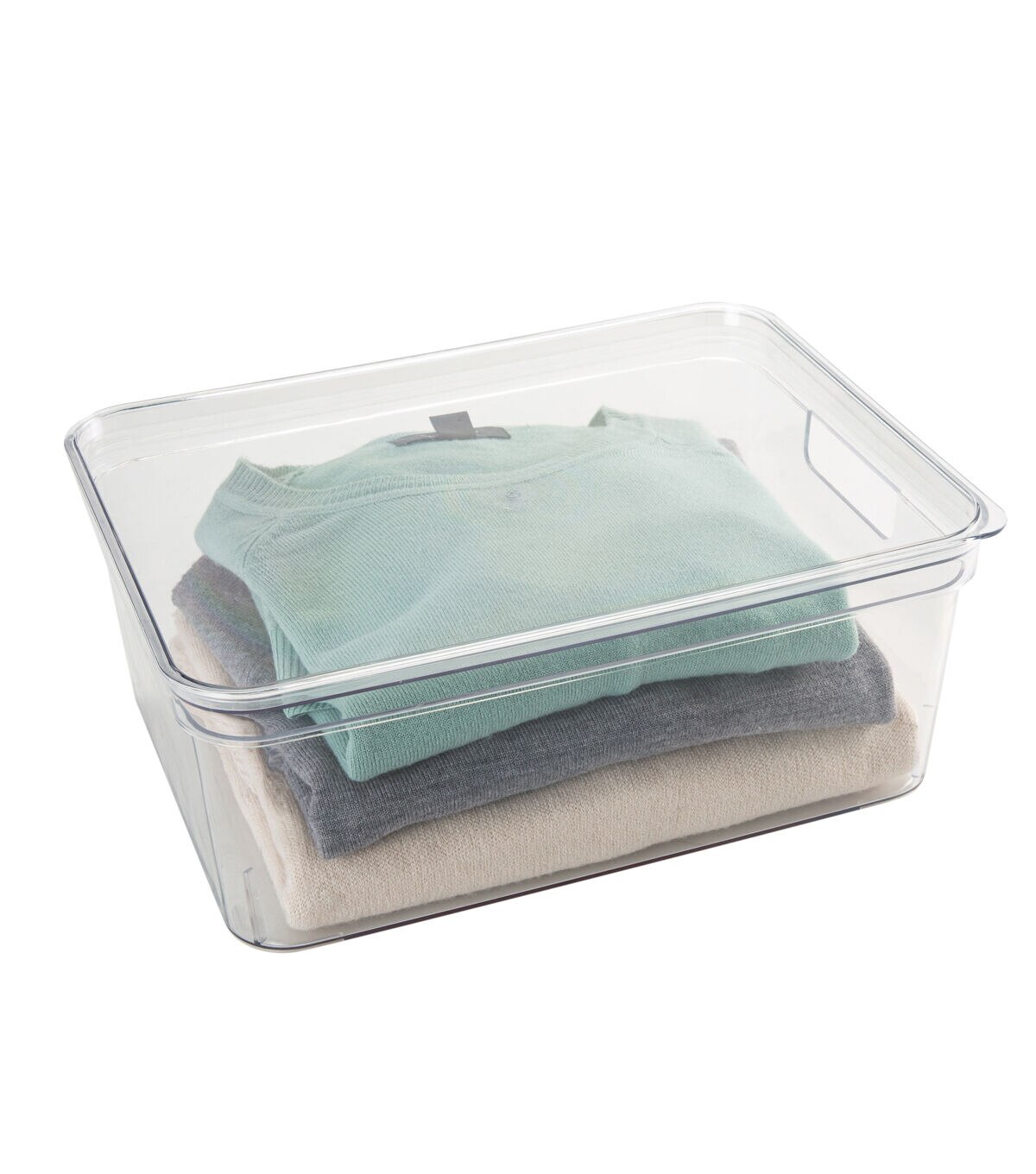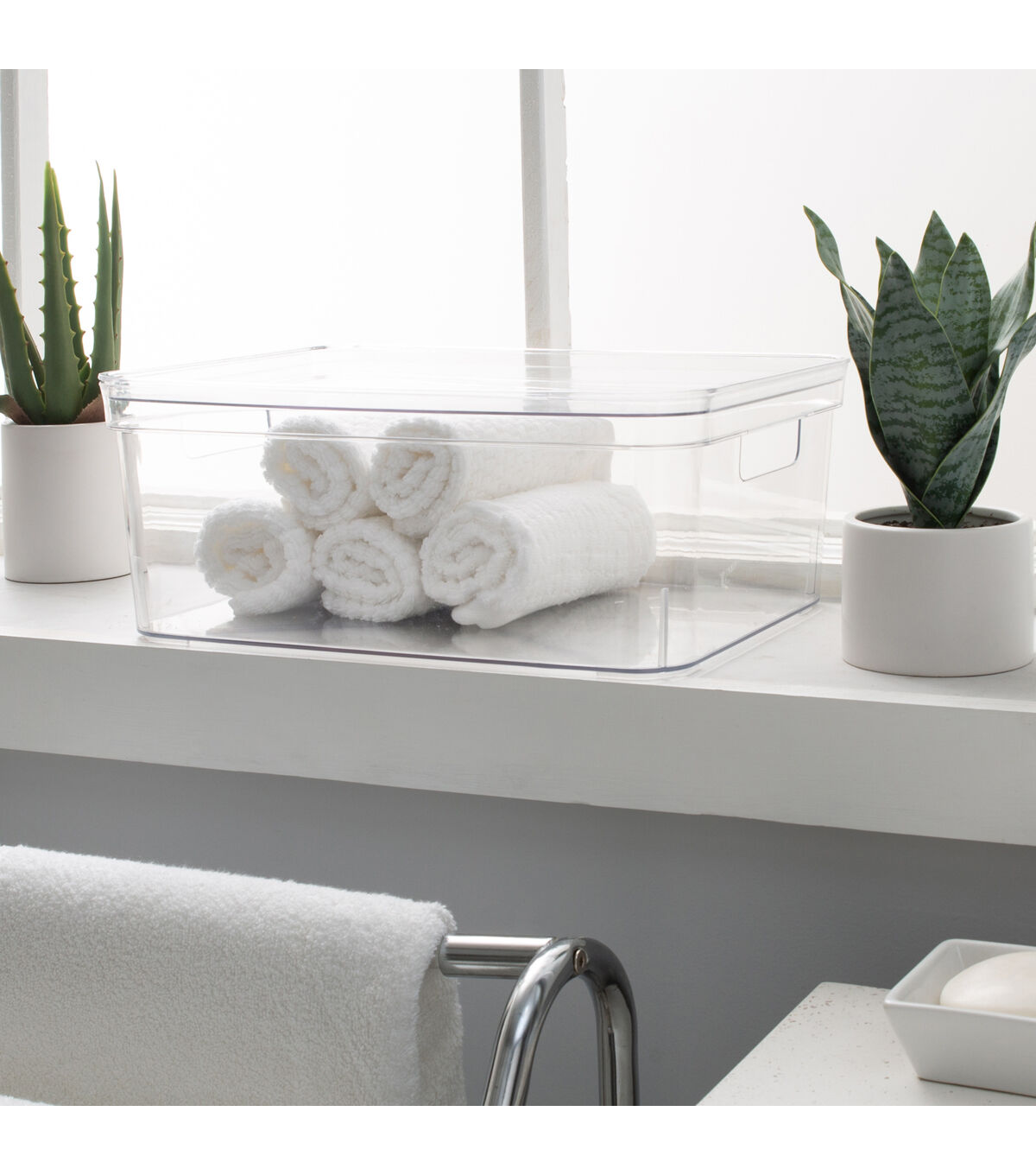 Simplify 14" x 5.5" Clear Lidded Storage Bin With Handles