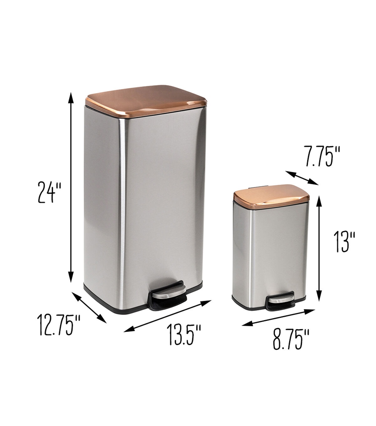 Honey Can Do 13.5" x 24" Rose Gold Stainless Steel Step Trash Cans 2ct
