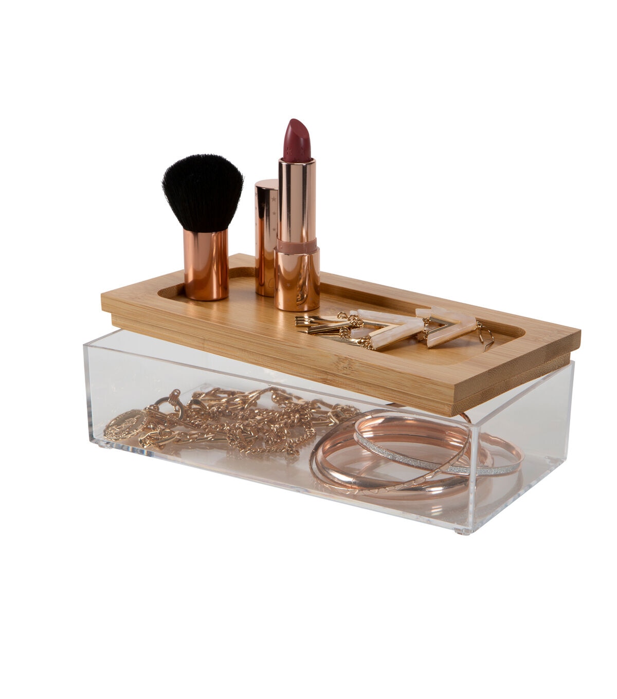 Simplify 7.5" x 4" Clear Organizer With Bamboo Lid