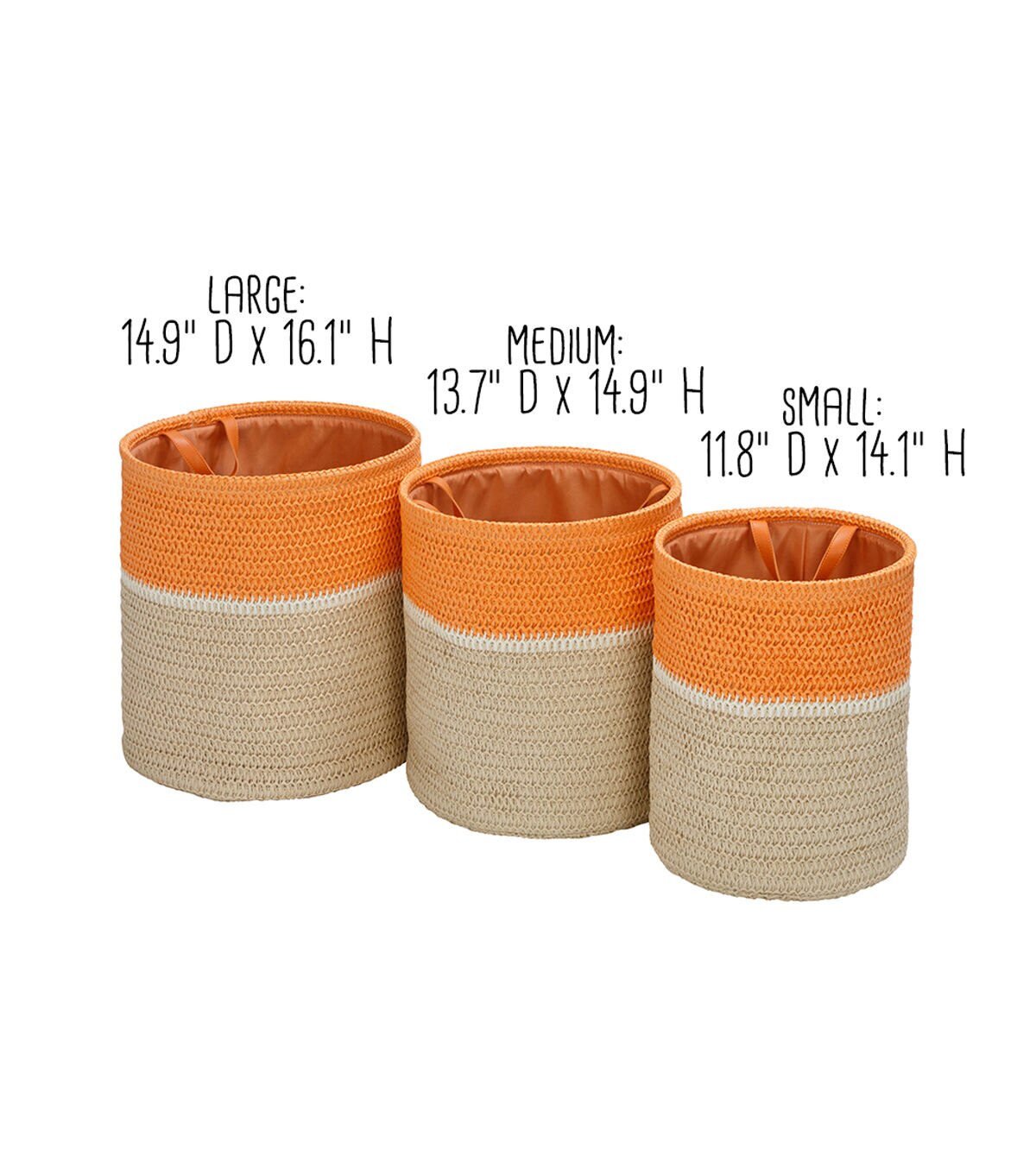 Honey Can Do 15" Beige & Orange Paper Straw Nesting Baskets 3ct