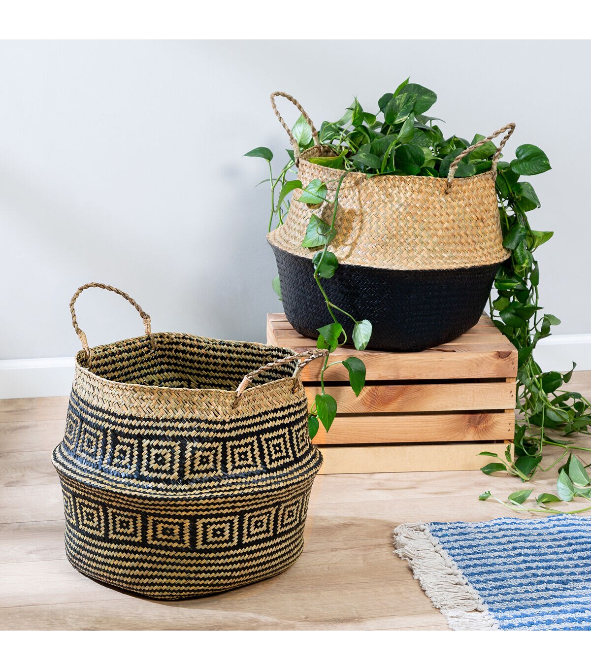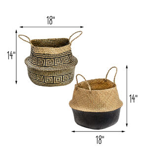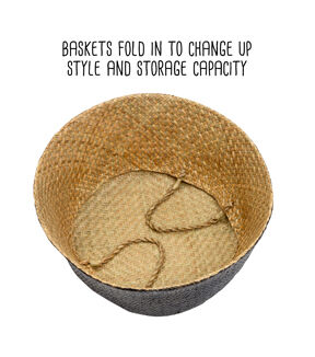 Honey Can Do 18" Brown & Black Folding Seagrass Woven Baskets 2ct
