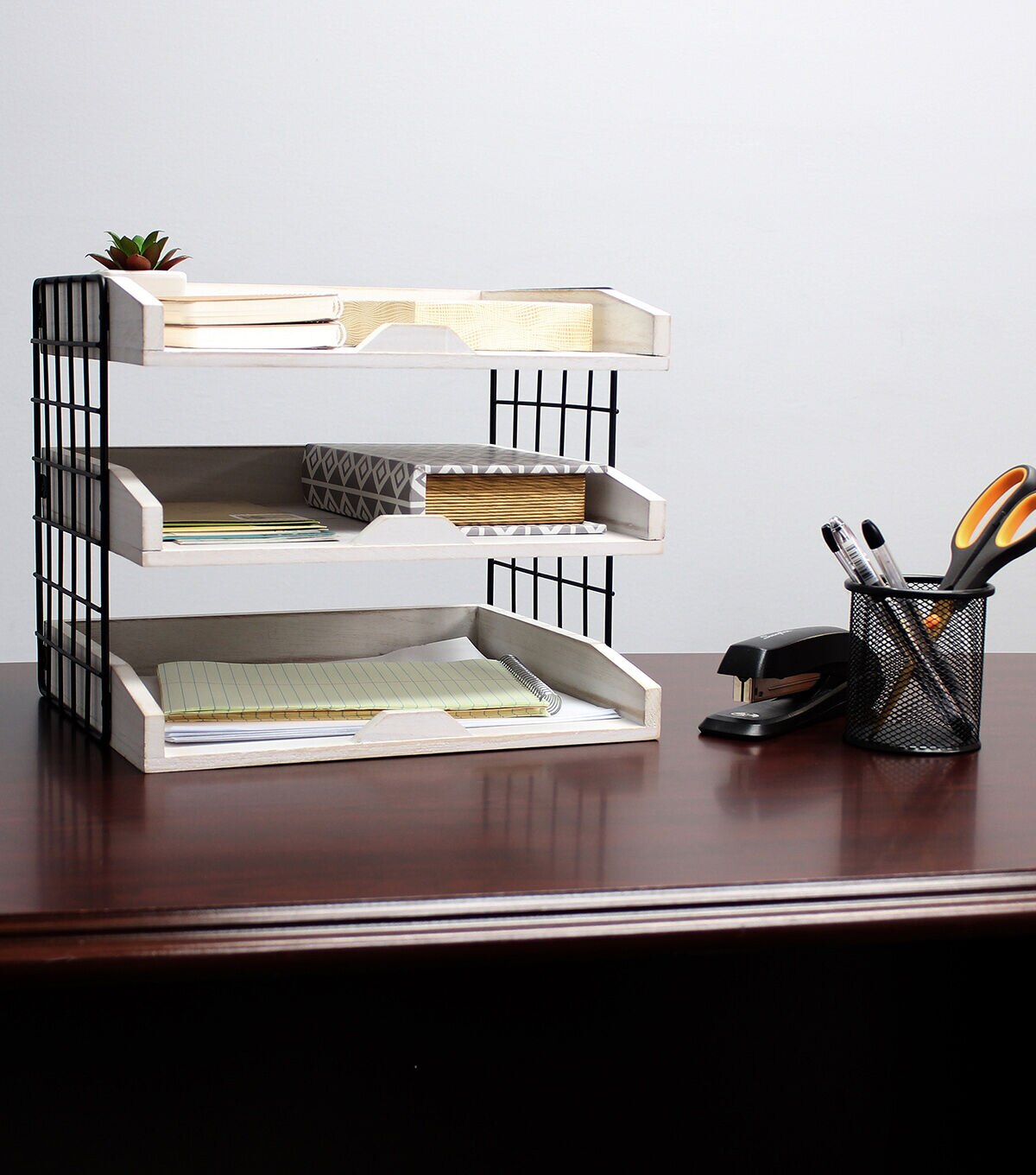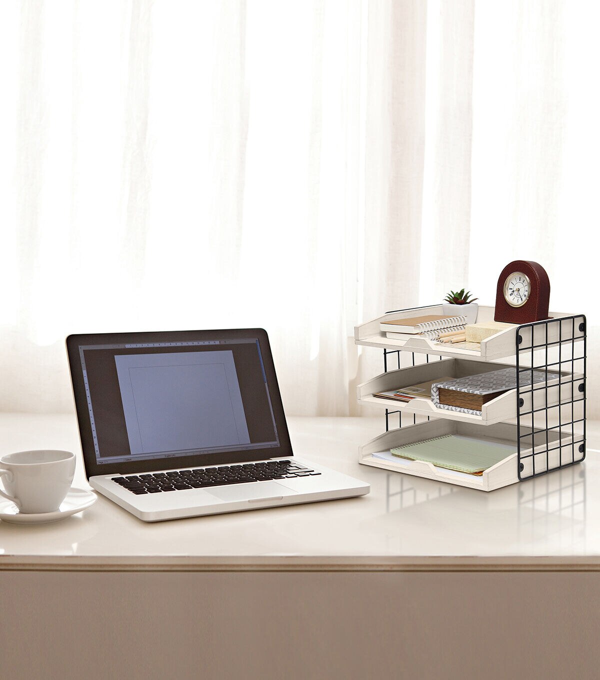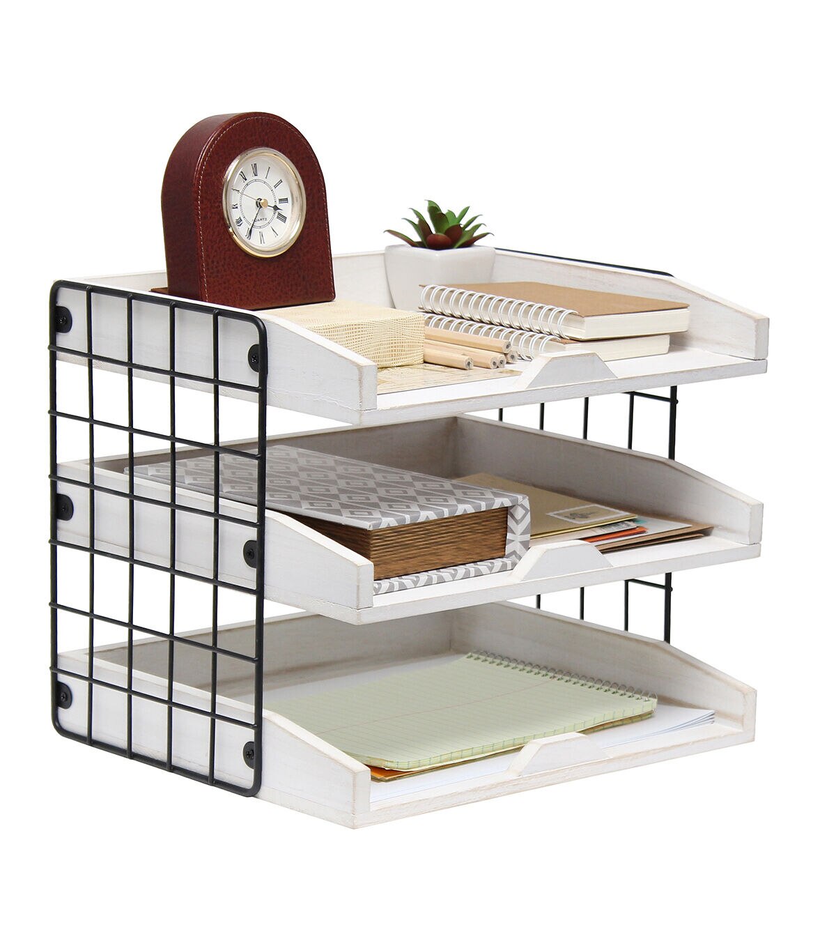 All The Rages Home Office Desk Organizer with 3 Shelves White Wash