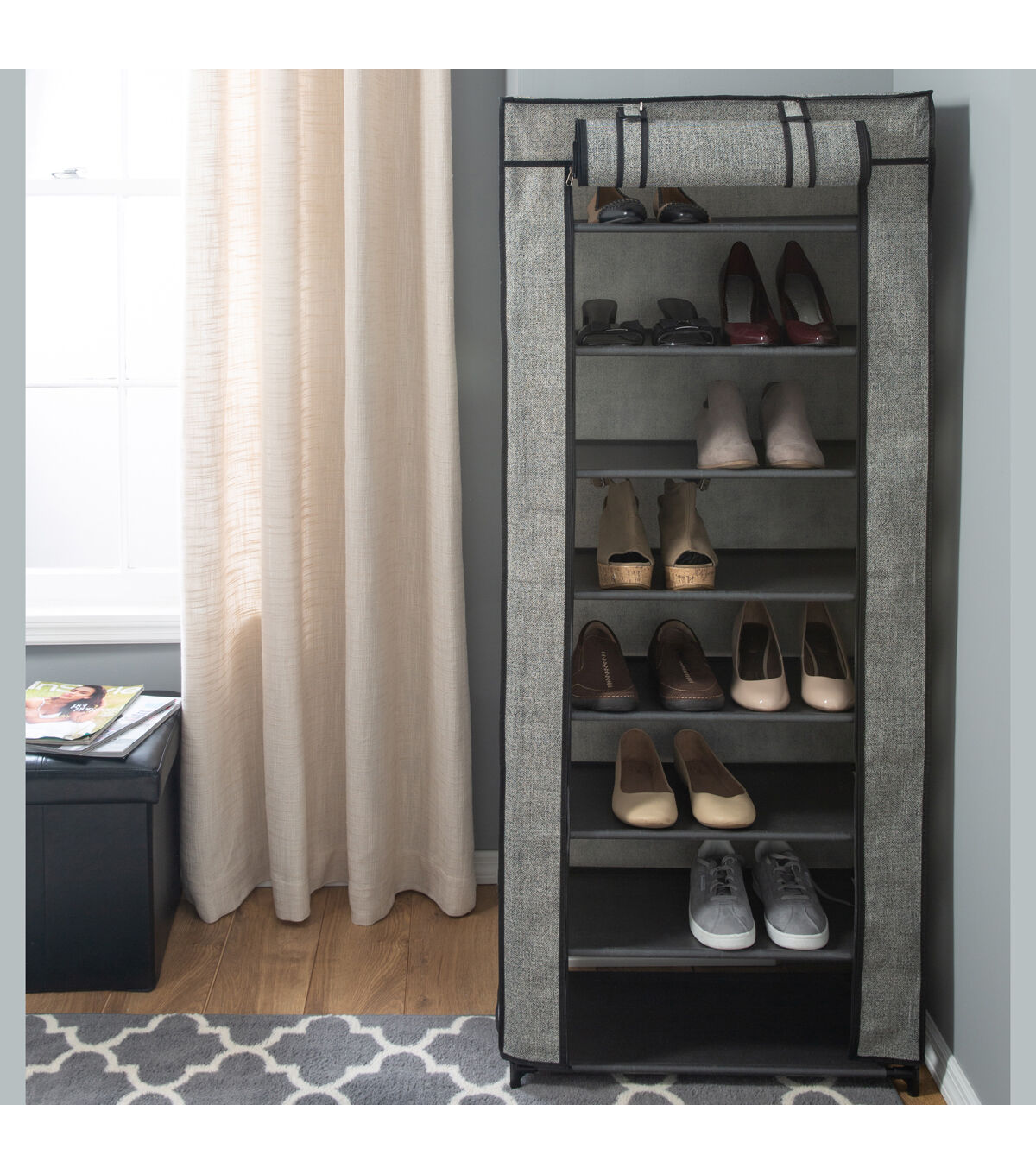 Simplify 55" Gray 8 Tier Shoe Organizer With Cover