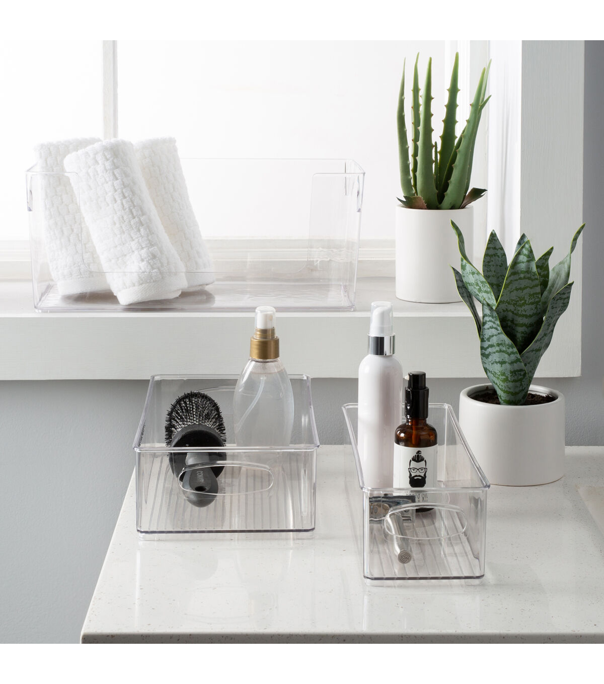 Simplify 10" x 3" Clear Vertical Stripe Organizer With Cutout Handles