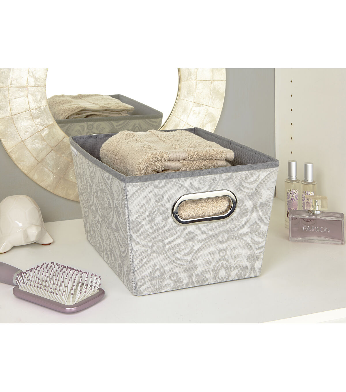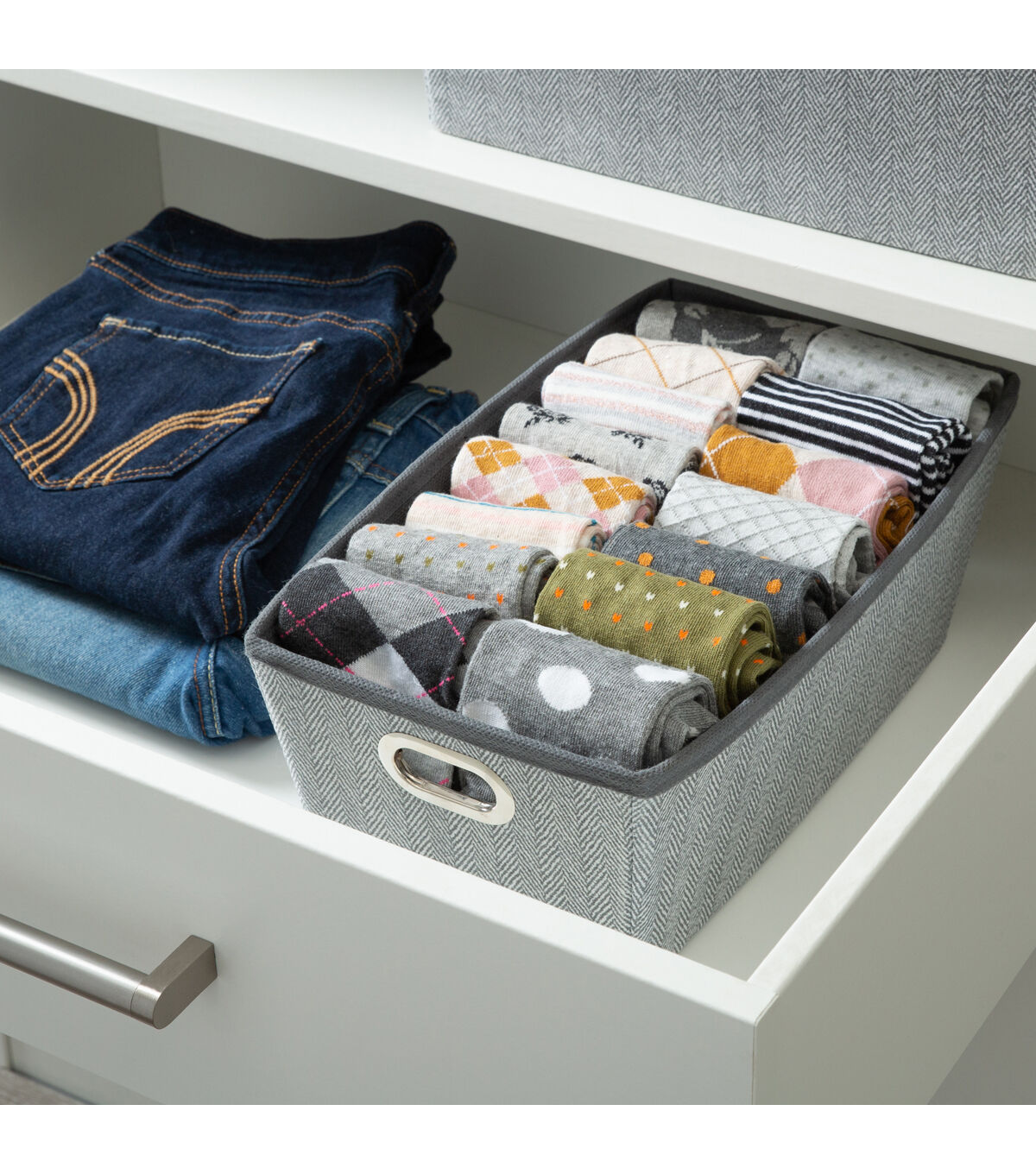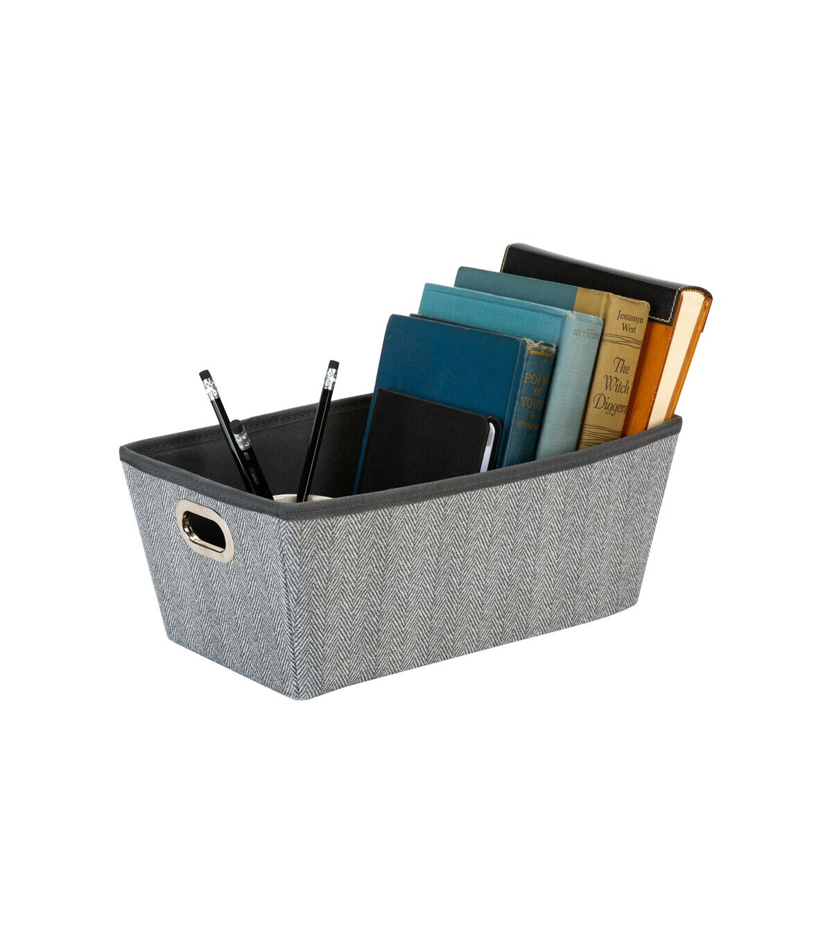 Simplify 13" x 7" Gray Herringbone Grommet Shelf Tote