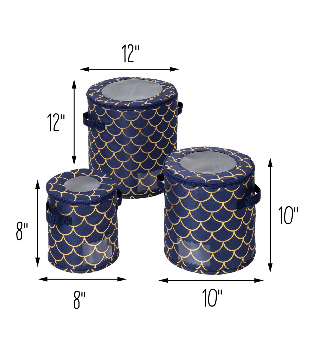 Honey Can Do 12" Navy & Gold Round Dinnerware Storage Cases 3ct