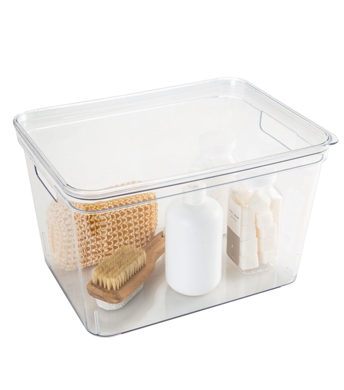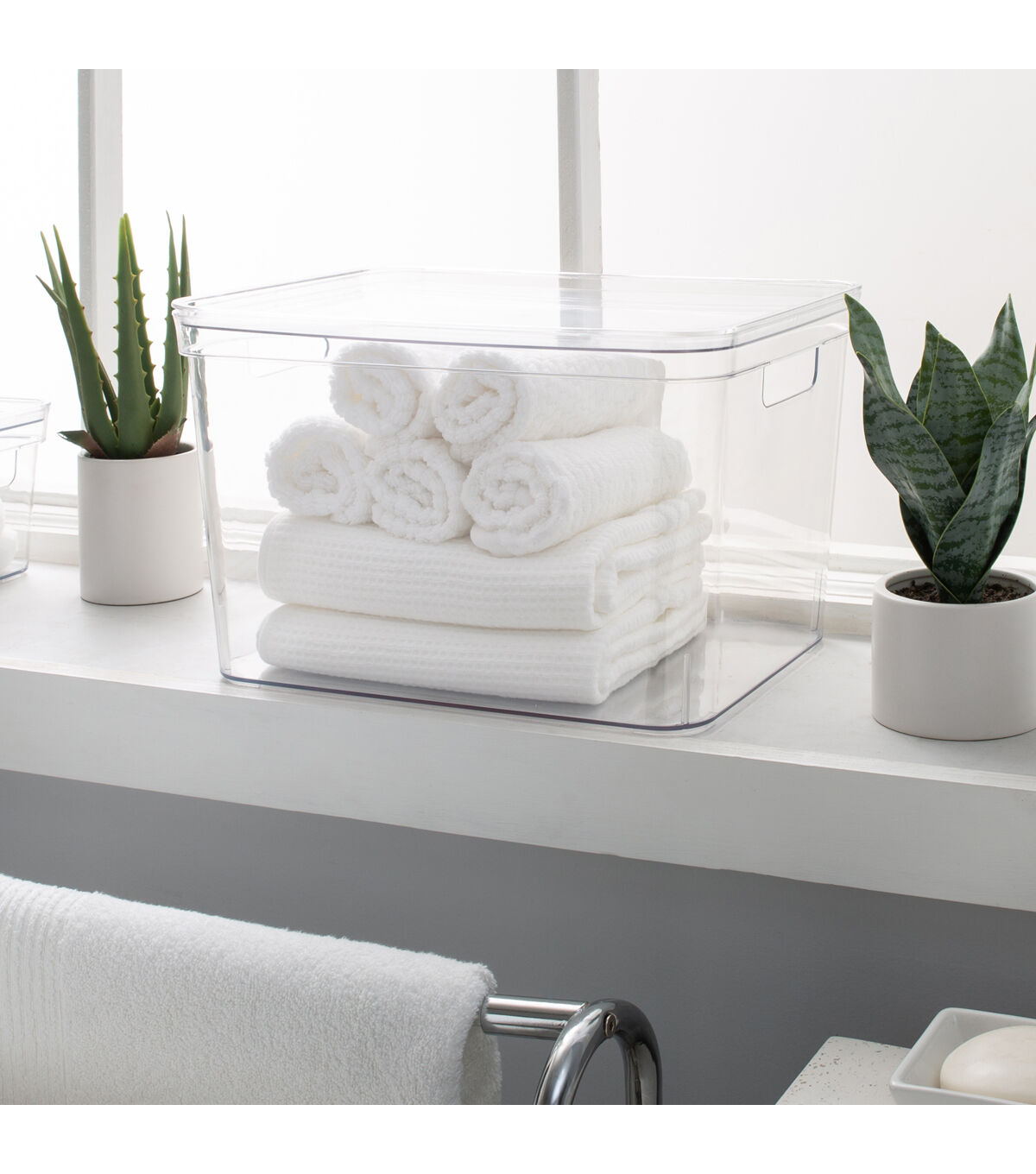 Simplify 14" x 9" Clear Lidded Storage Bin With Handles