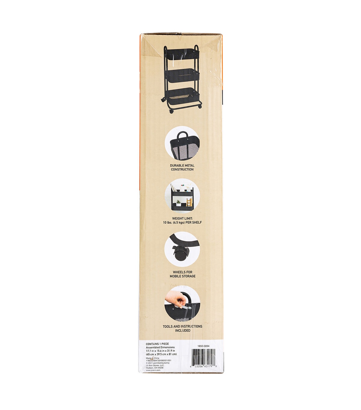 17" Rolling 3 Tier Metal Storage Cart by Top Notch