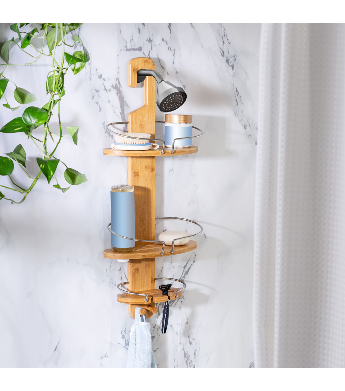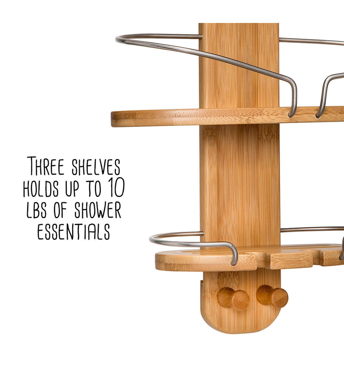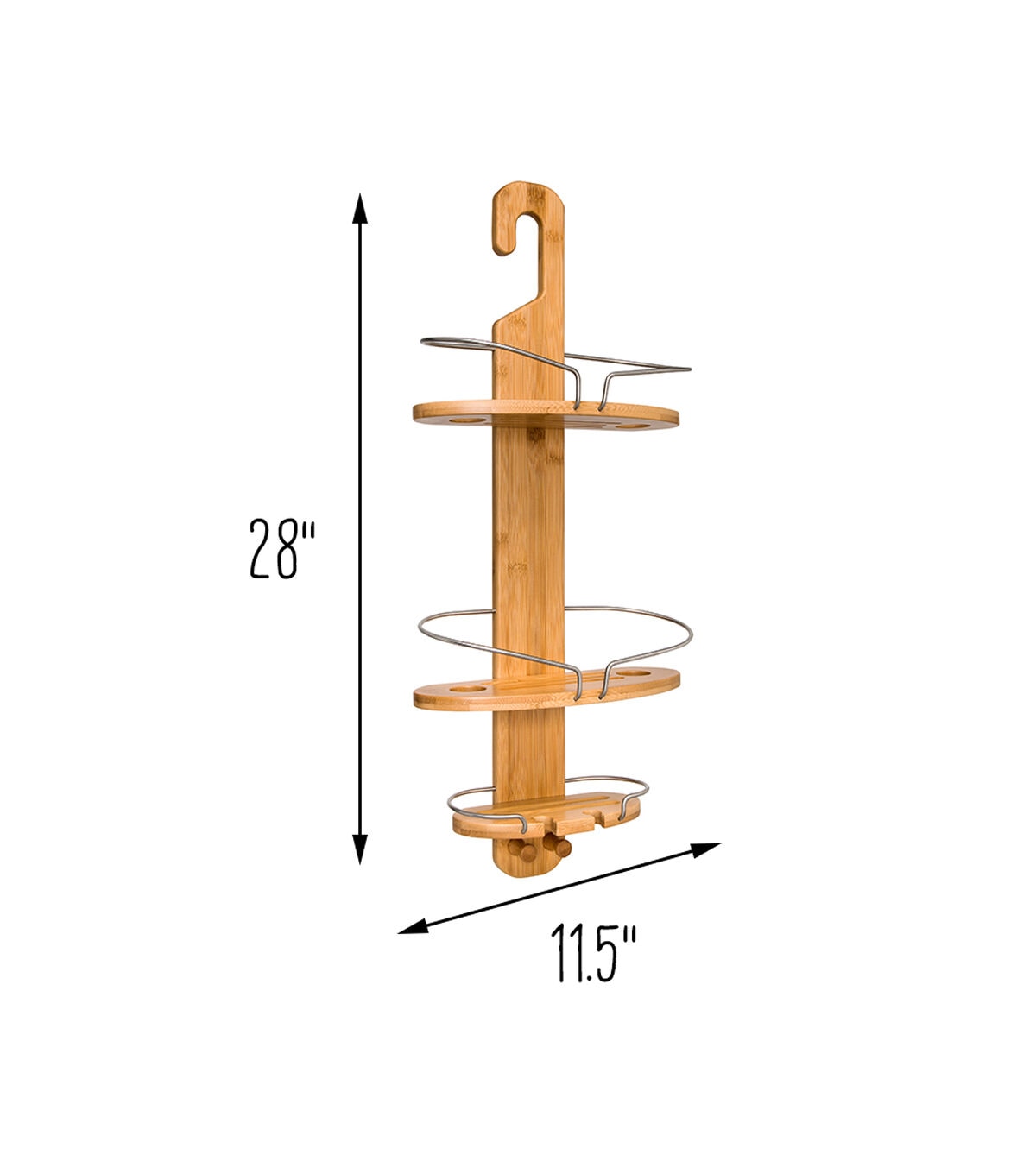 Honey Can Do 11.5" Natural & Chrome 3 Tier Bamboo Shower Caddy 10lbs