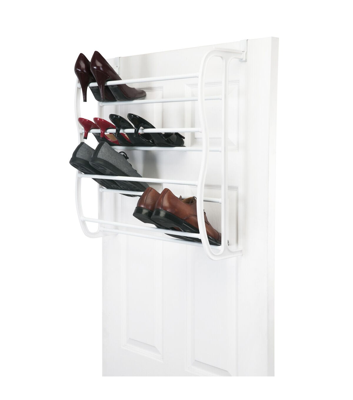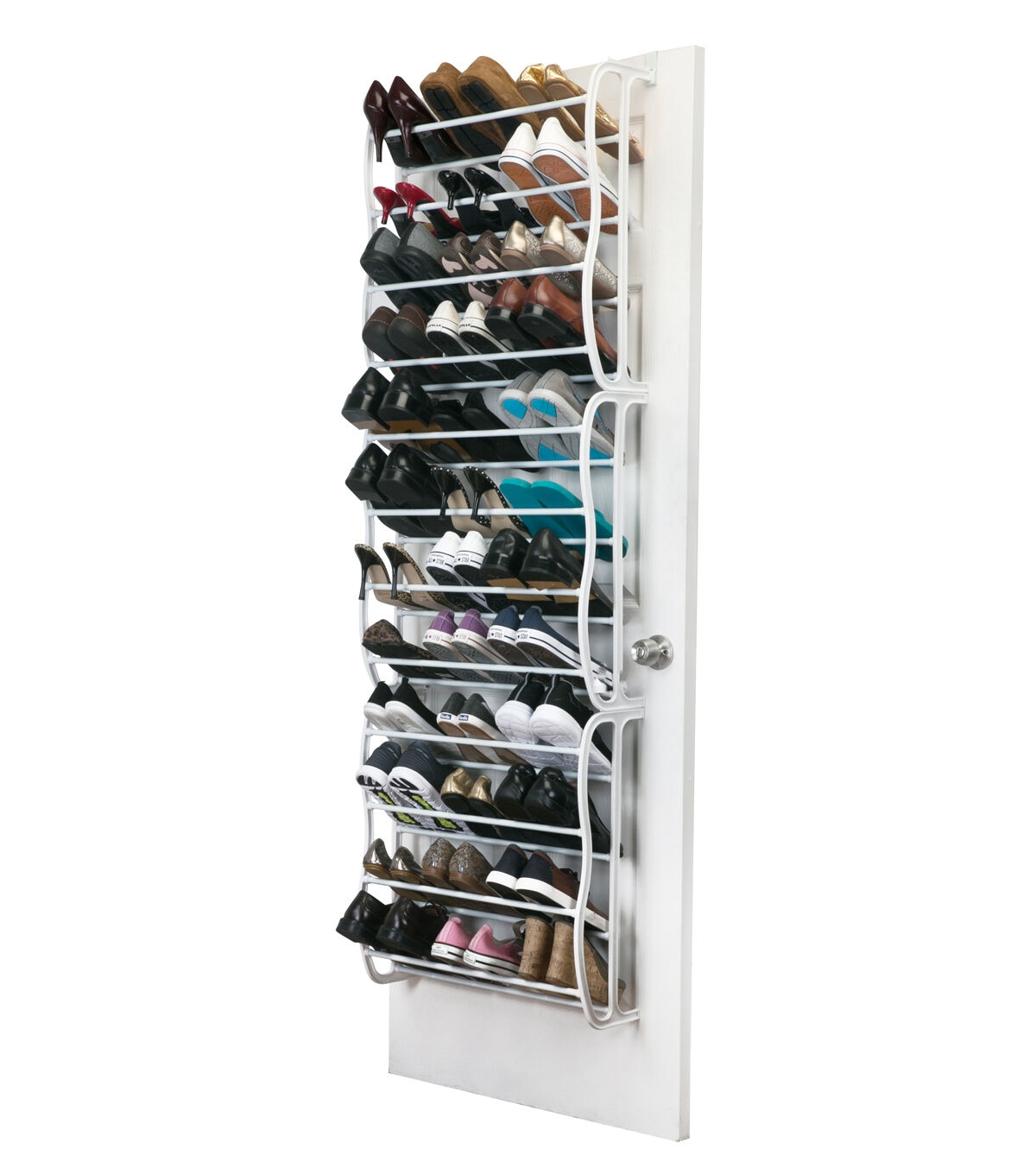 Simplify 71" White 36 Pair Adjustable Over the Door Shoe Rack