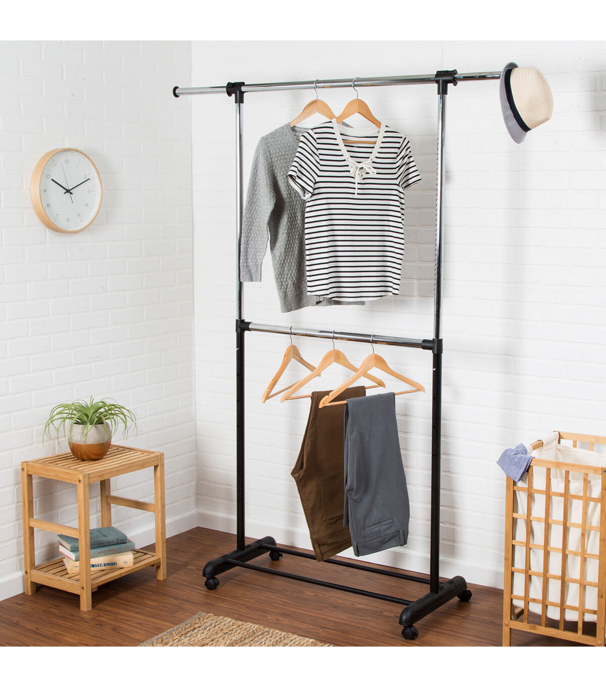 Honey Can Do 60" x 73" Chrome & Black Expandable Rolling Clothes Rack