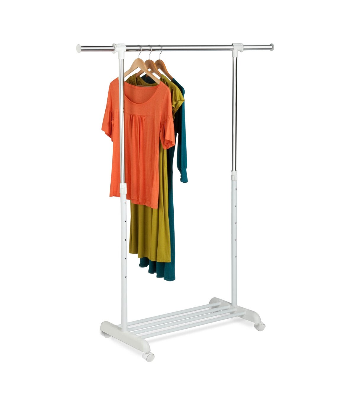 Honey Can Do 48" x 63" Chrome & White Adjustable Rolling Clothes Rack