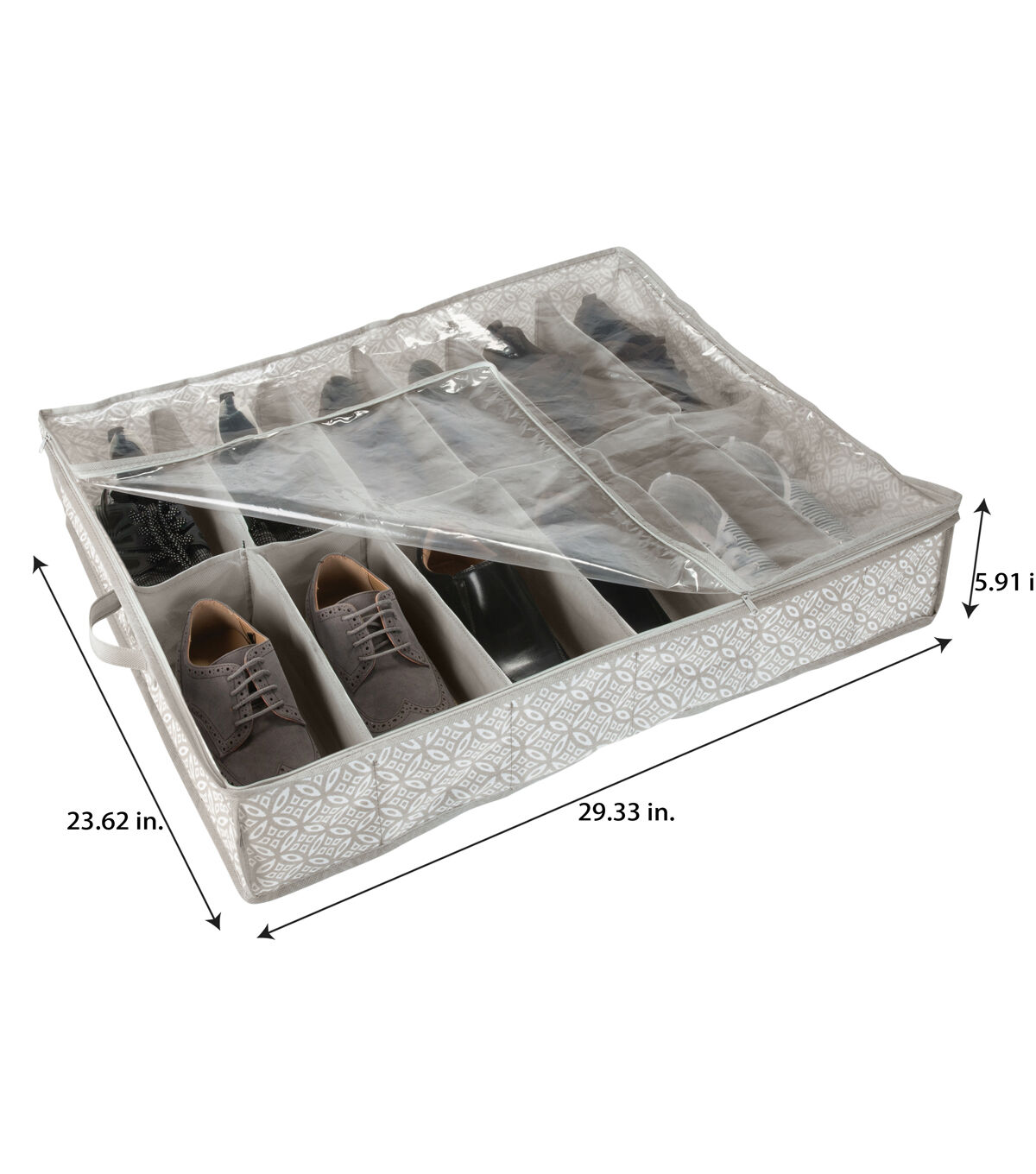 Simplify 29" Gray 12 Pair Boho Print Under the Bed Shoe Storage Bag