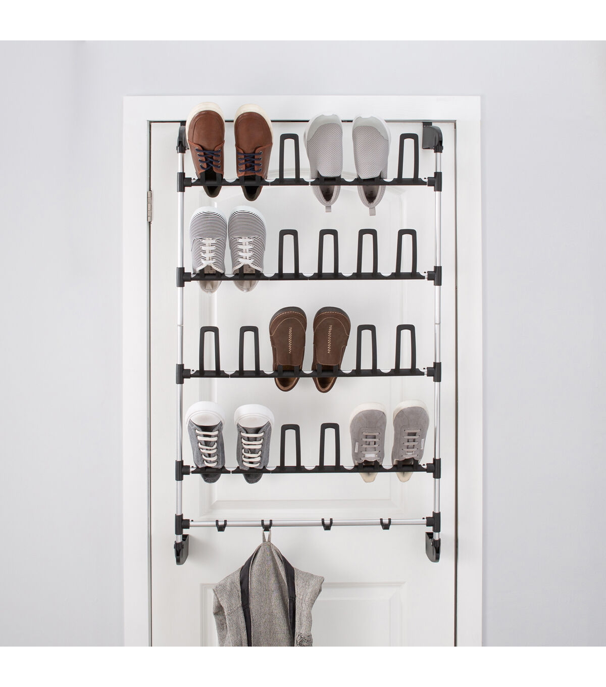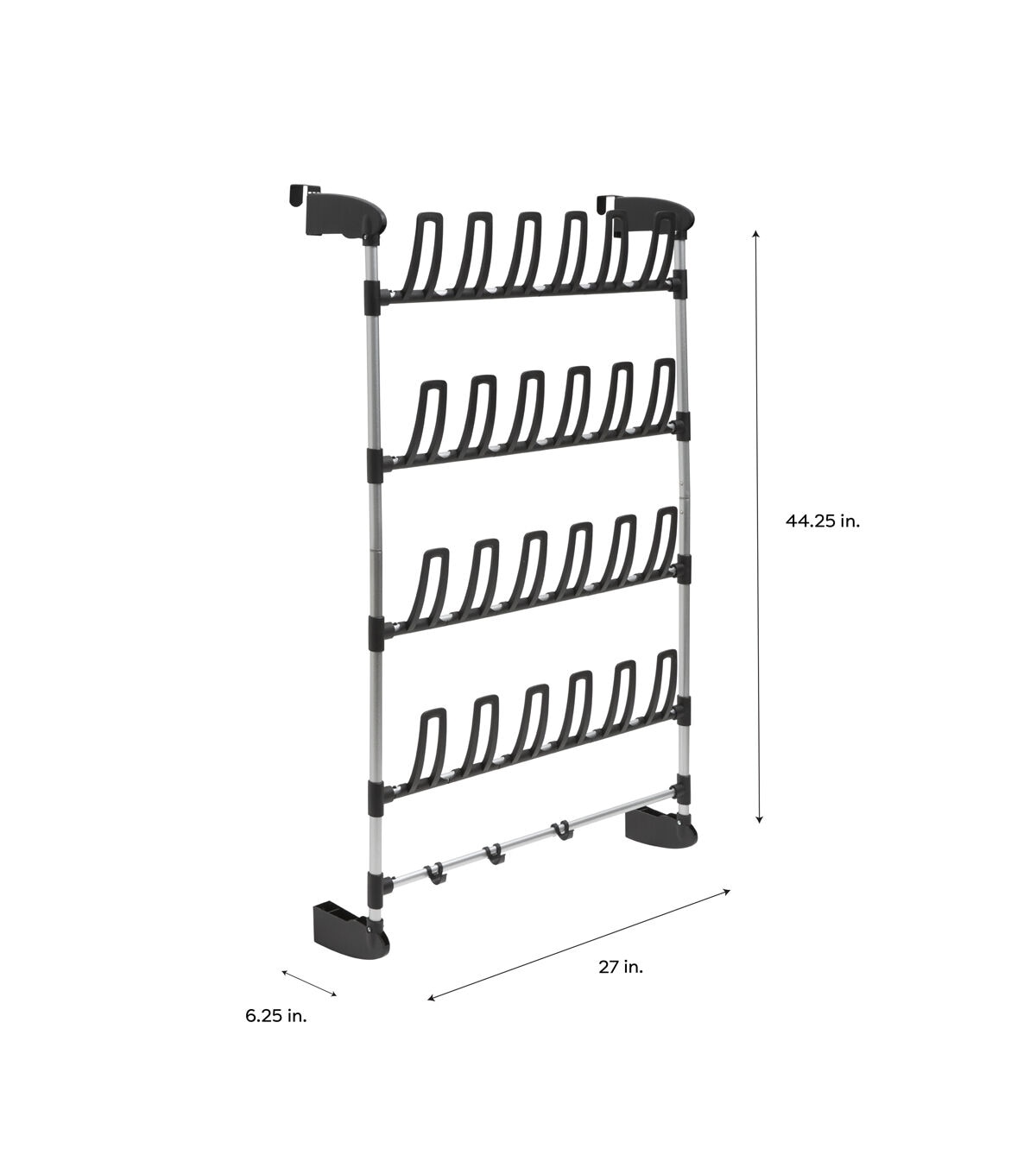 Organize It All 27" Black 12 Pair Over the Door Shoe Rack With Hooks