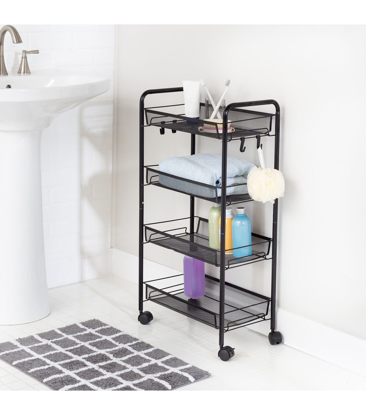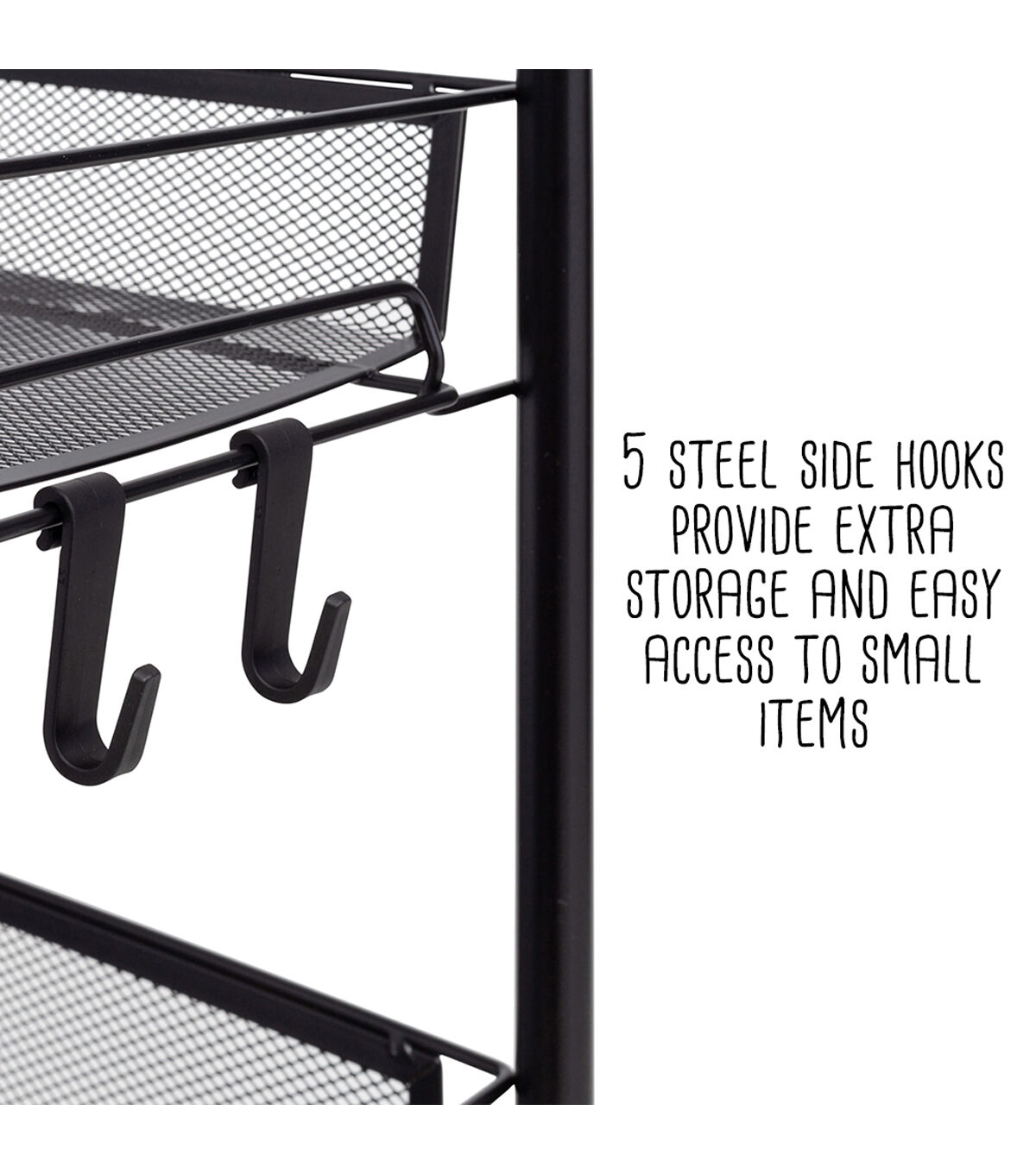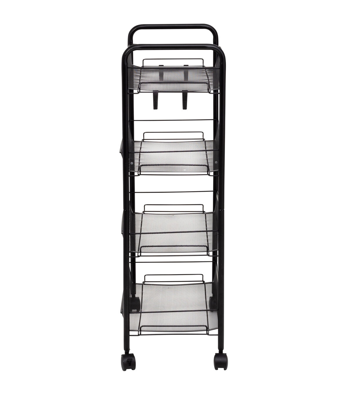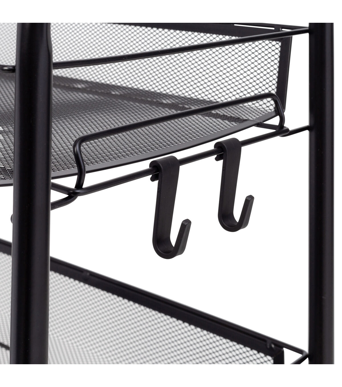Honey Can Do 17.5" x 33" Black 4 Tier Metal Storage Cart With 5 Hooks