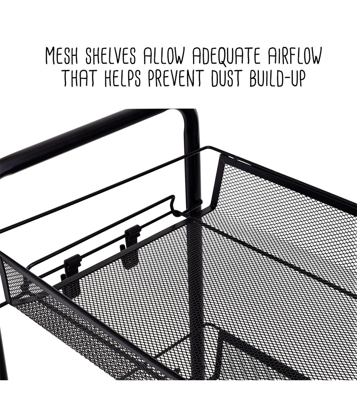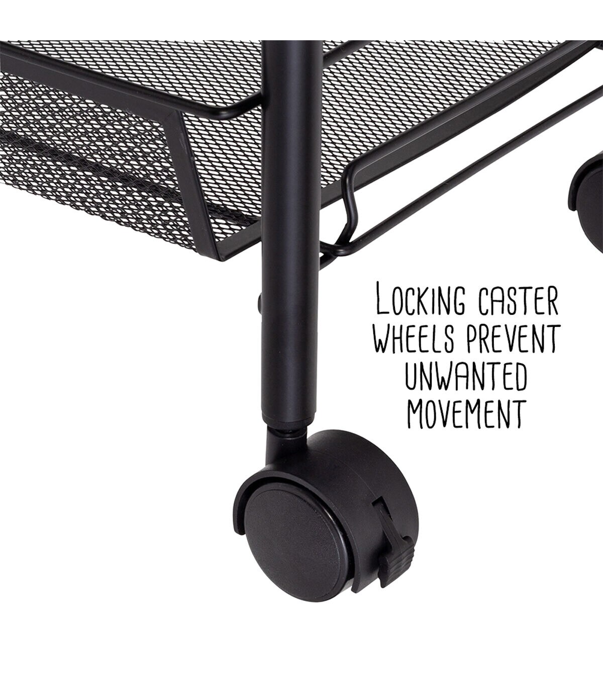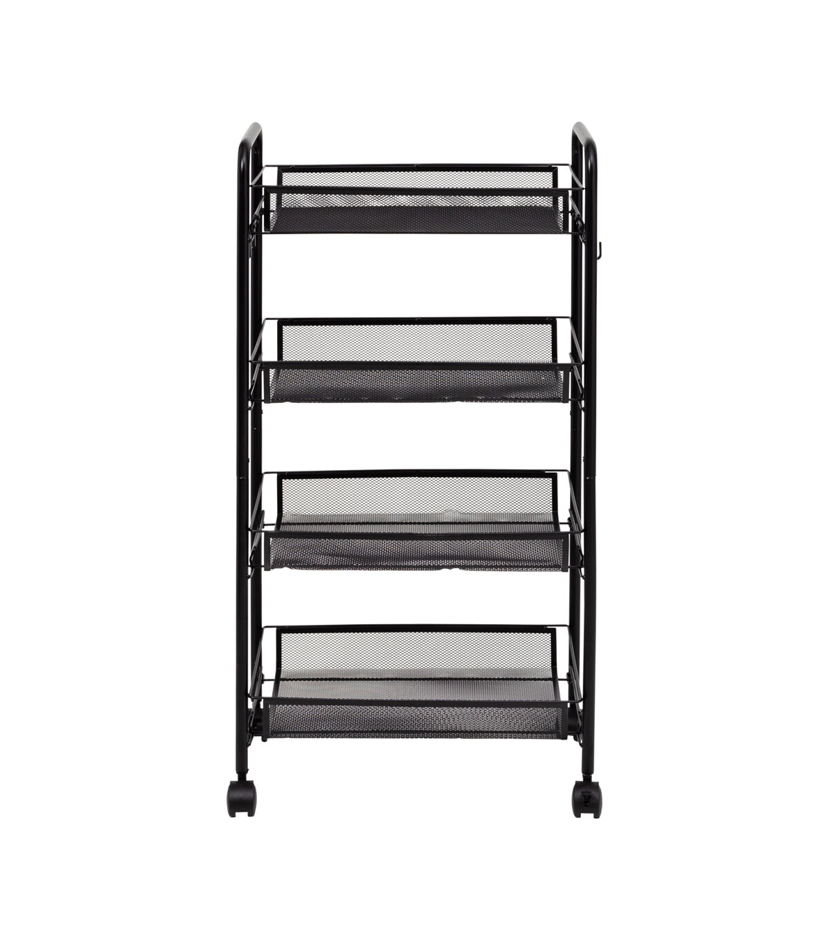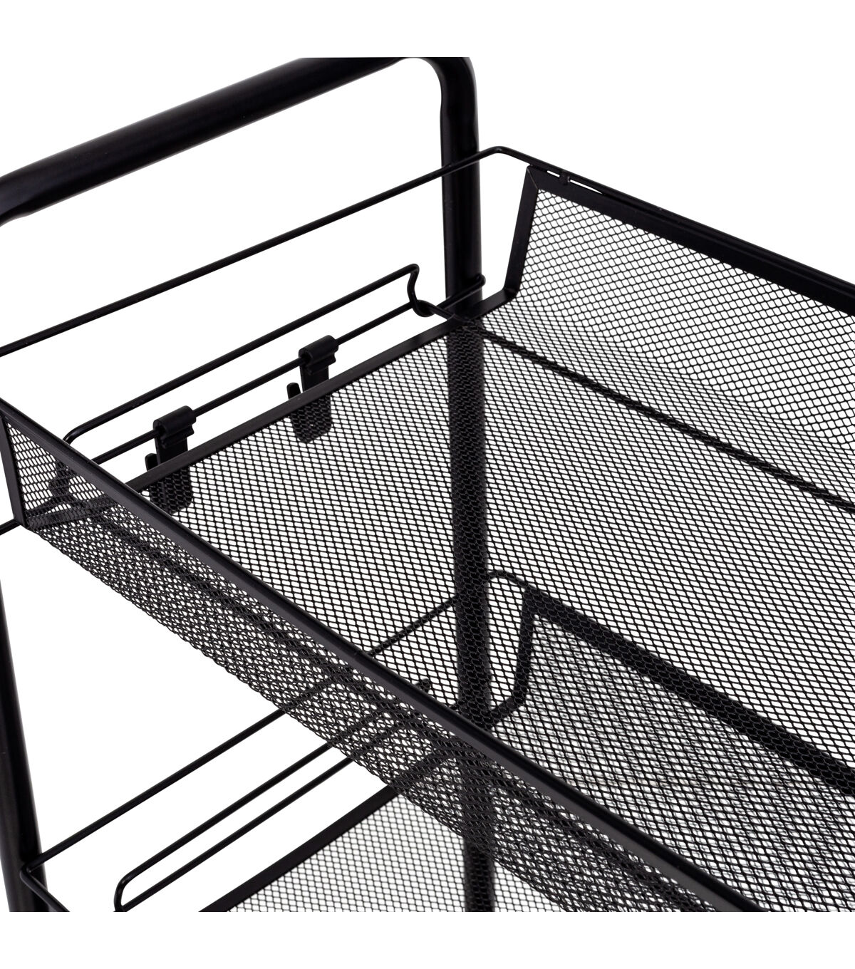 Honey Can Do 17.5" x 33" Black 4 Tier Metal Storage Cart With 5 Hooks