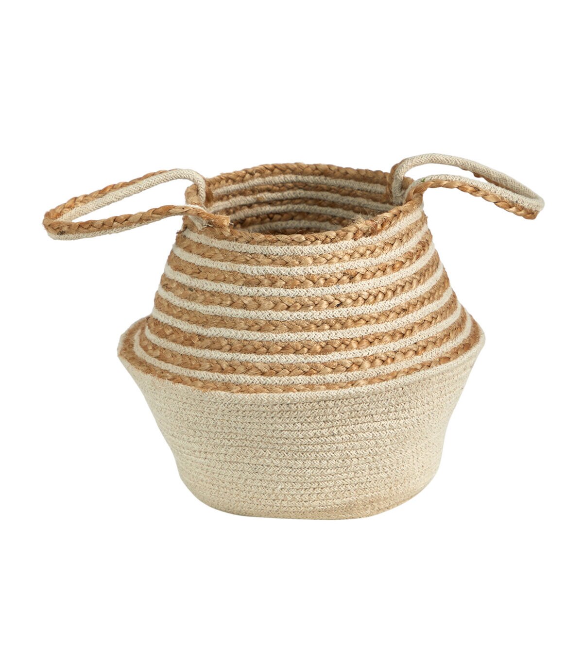 Nearly Natural 14" Handwoven Cotton & Jute Boho Striped Basket