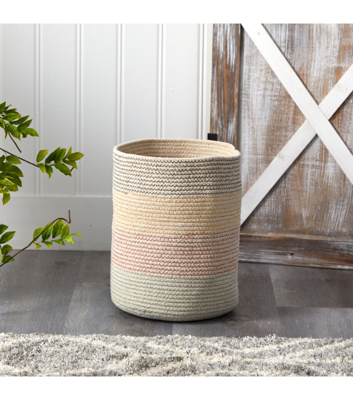 Nearly Natural 12" Multicolor Handmade Natural Cotton Woven Basket