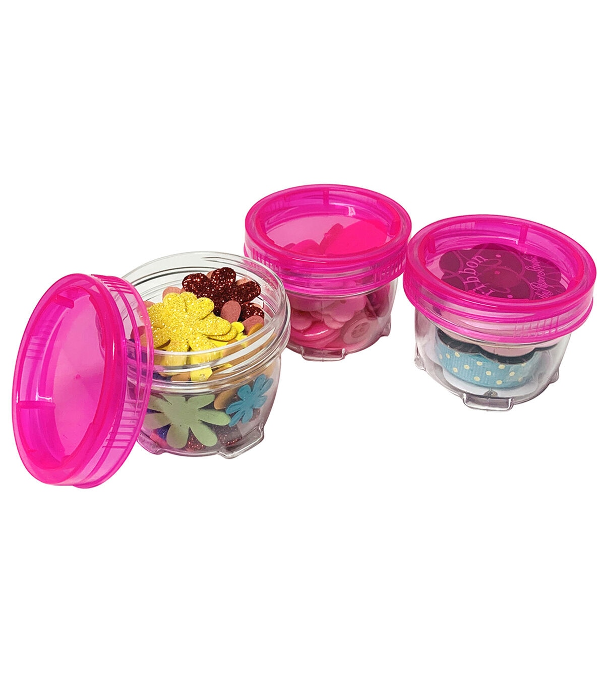 Everything Mary 2" x 1.5" Plastic Stackable Jars With Pink Lids 3pk