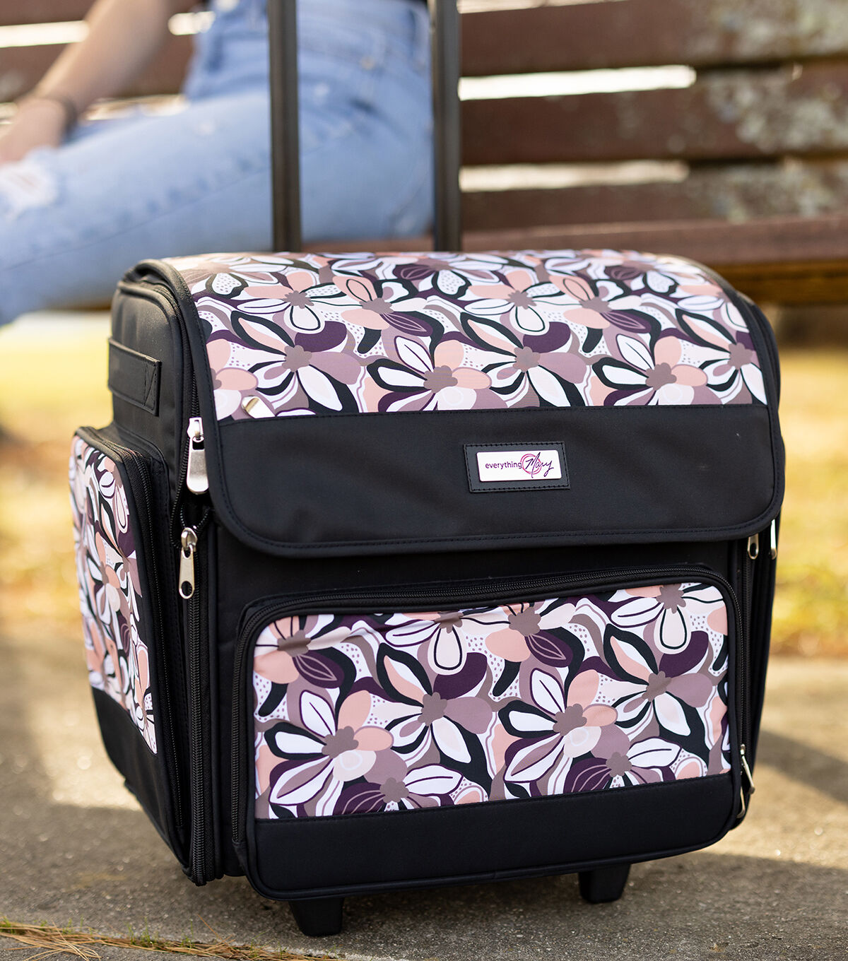 Everything Mary 18" Brown Floral Collapsible Rolling Craft Bag