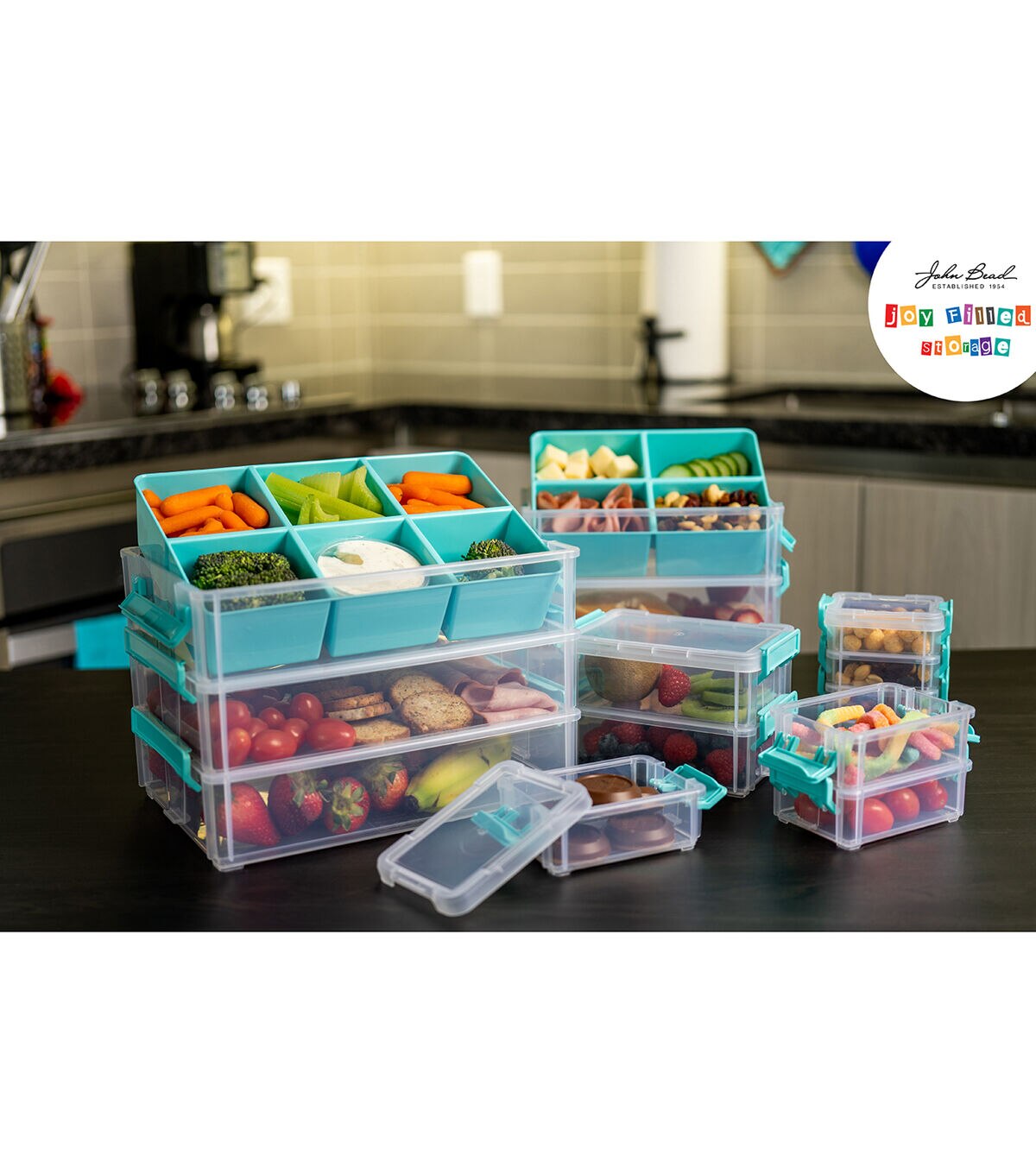 John Bead 8" x 6" Clear Joy Filled Stackable Storage Containers 3pk