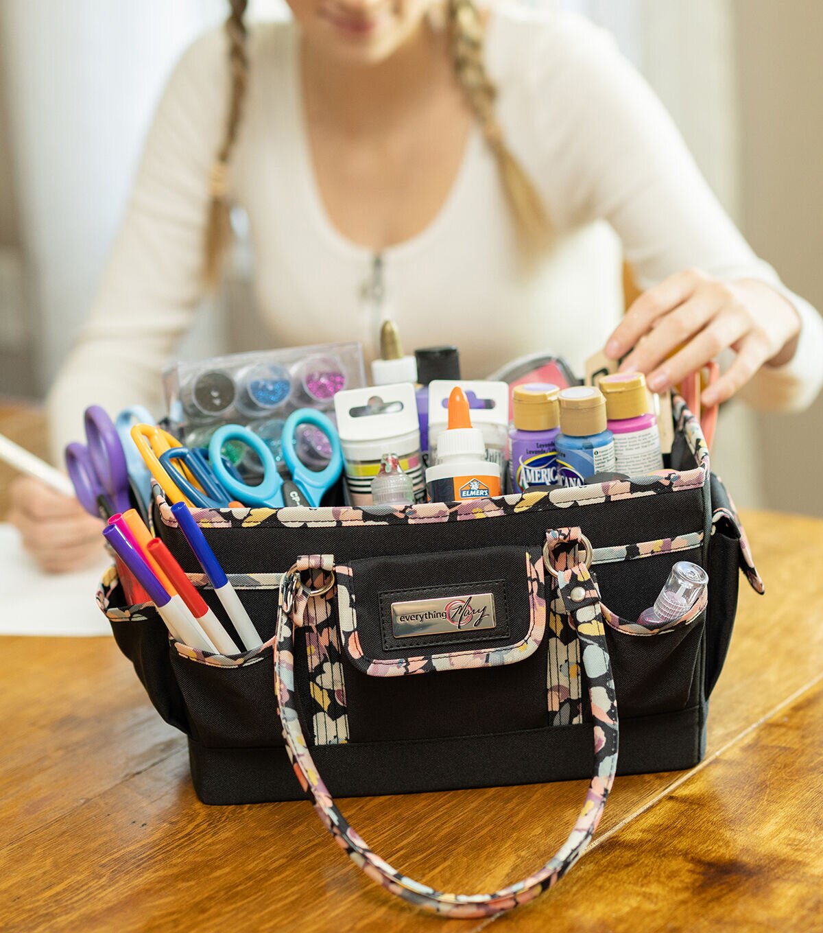 Everything Mary 9" Floral on Black Collapsible Craft Caddy