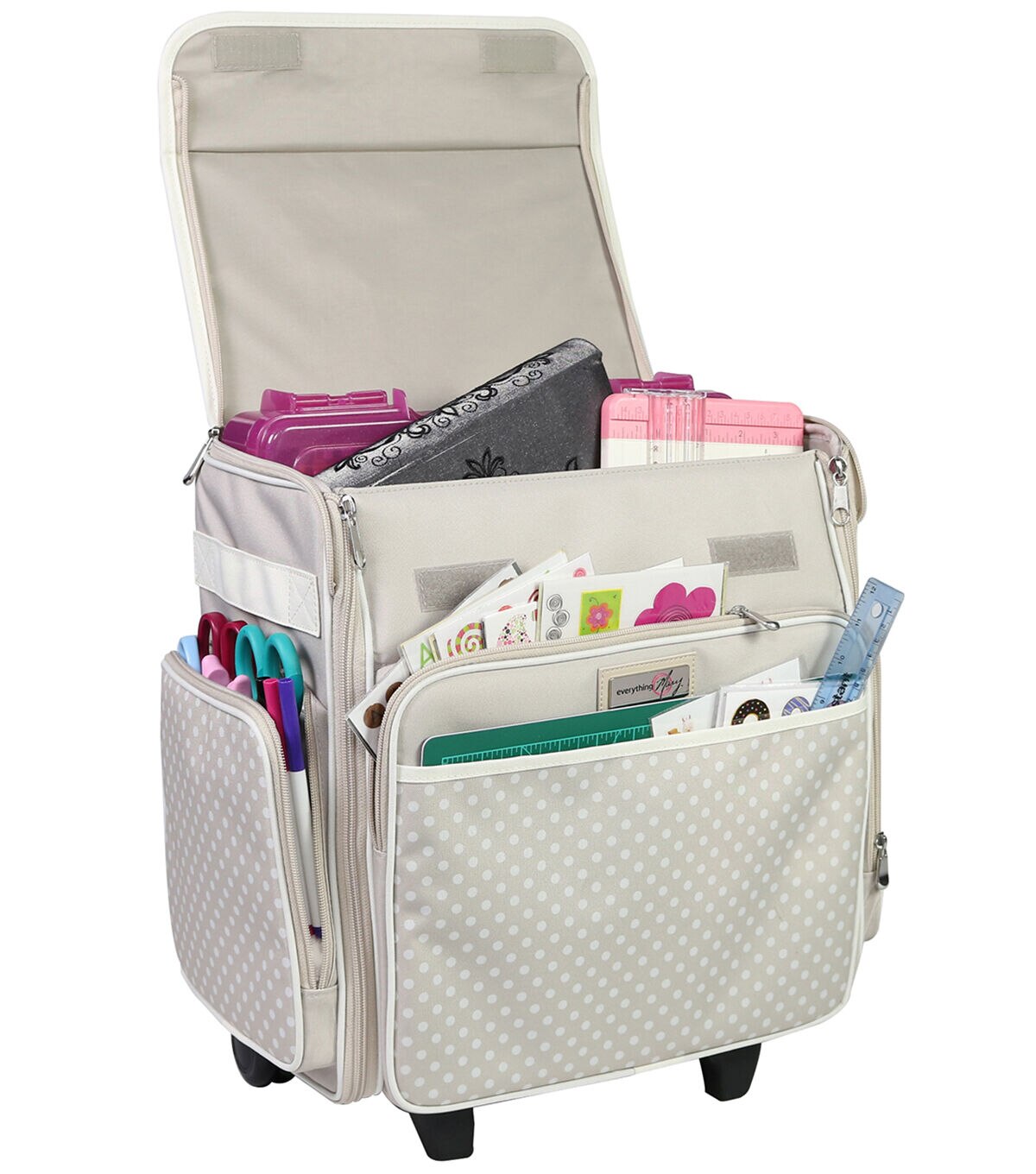 Everything Mary 16" Dots on Tan Collapsible Rolling Sewing Machine Case