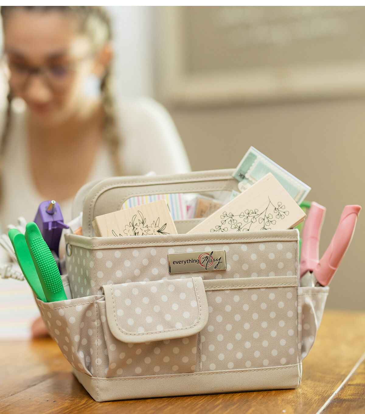 Everything Mary 9" Dots on Tan Collapsible Craft Caddy
