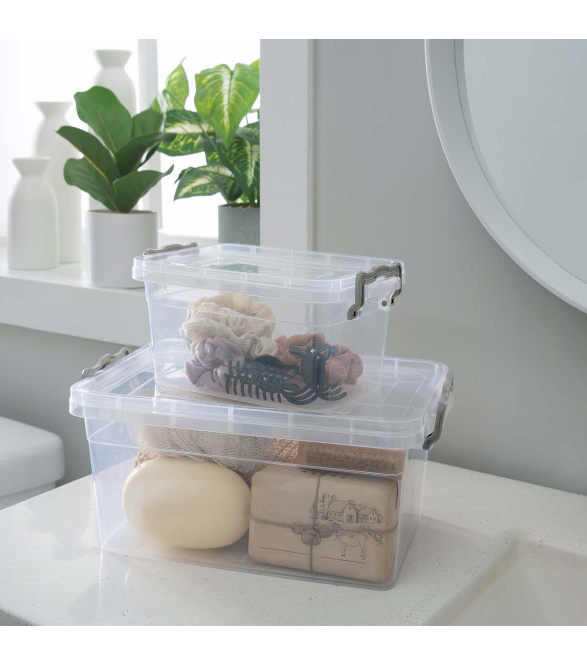 Simplify 1.75 Liter Clear Stackable Storage Bin With Carrying Handles