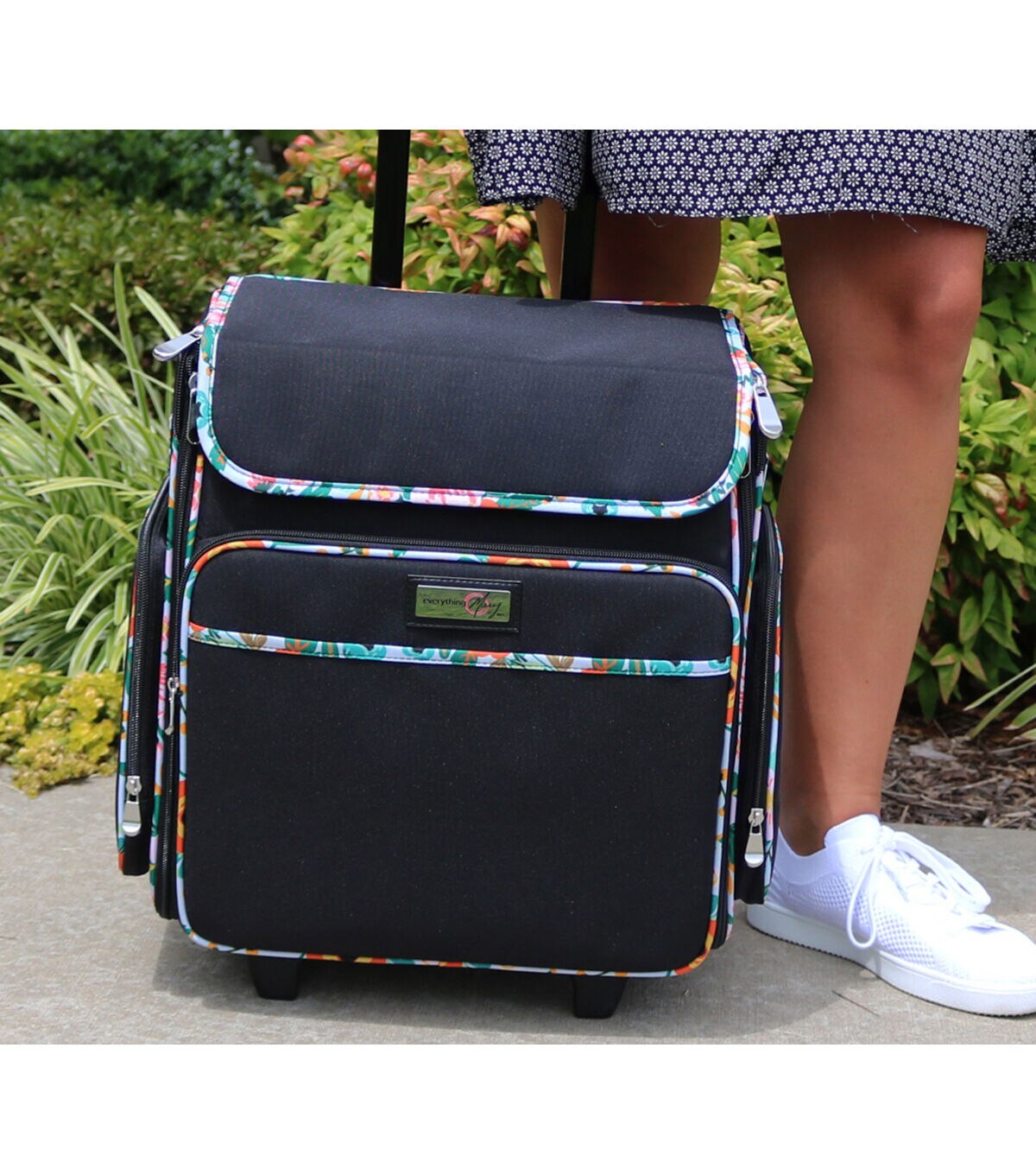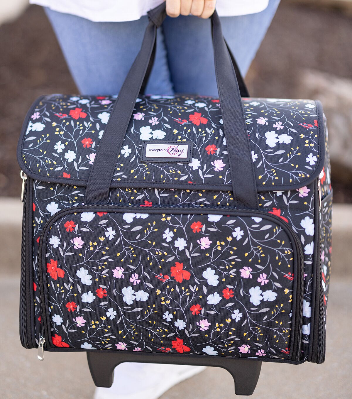 Everything Mary 18" Black Floral Teacher Rolling Tote