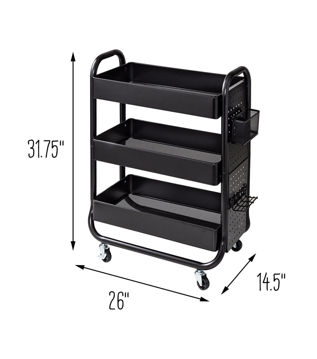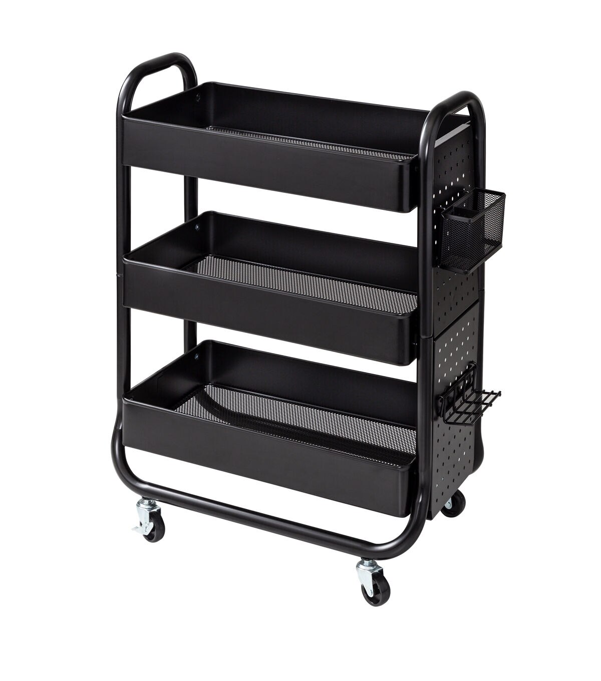 Honey Can Do 26" x 32" Black Craft Cart With Wheels & Metal Basket
