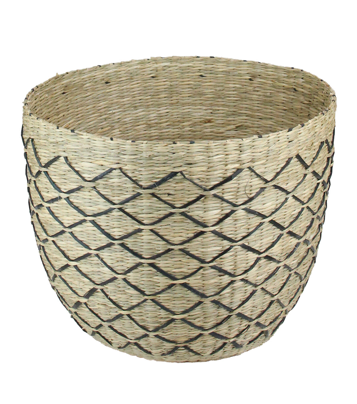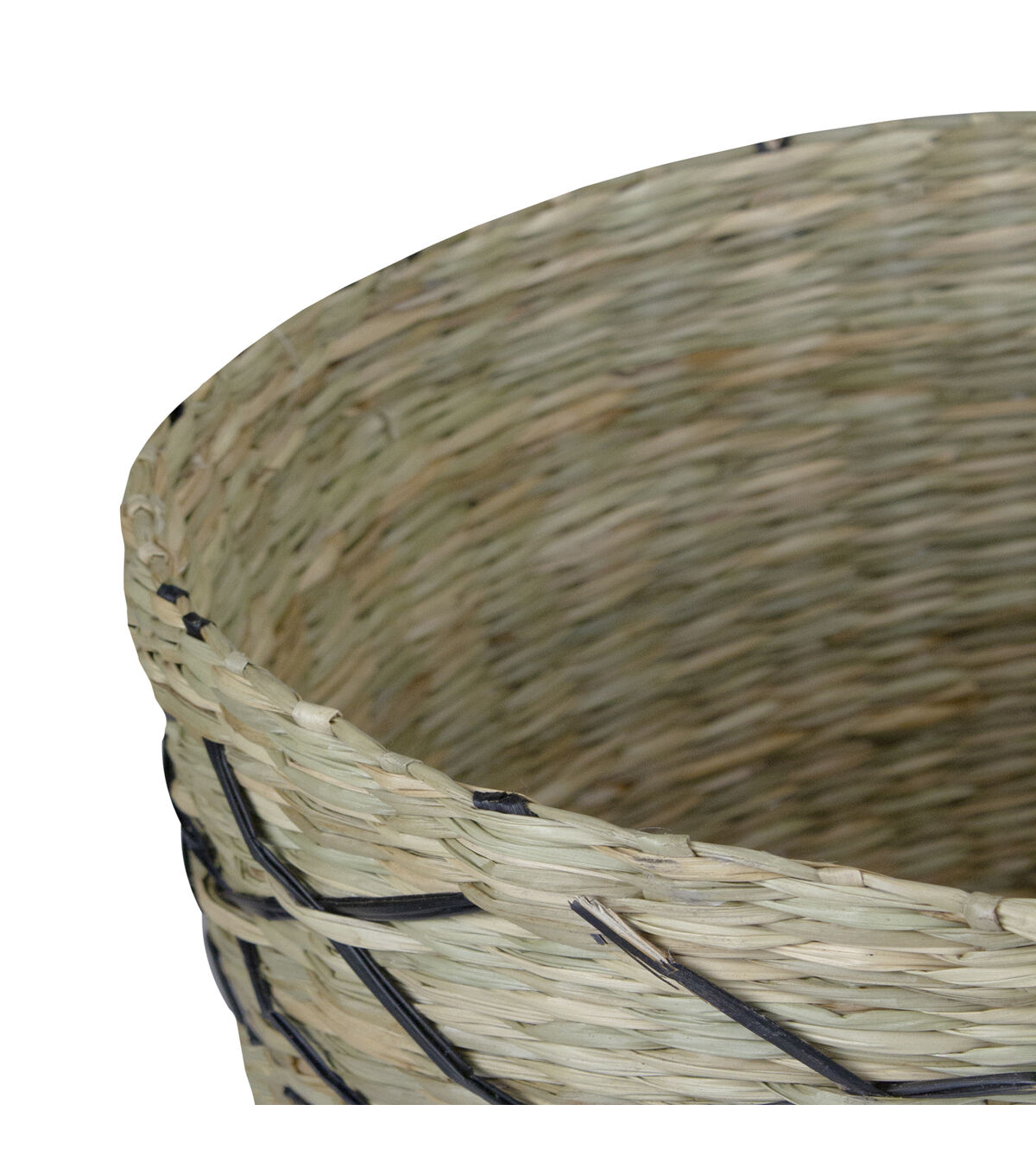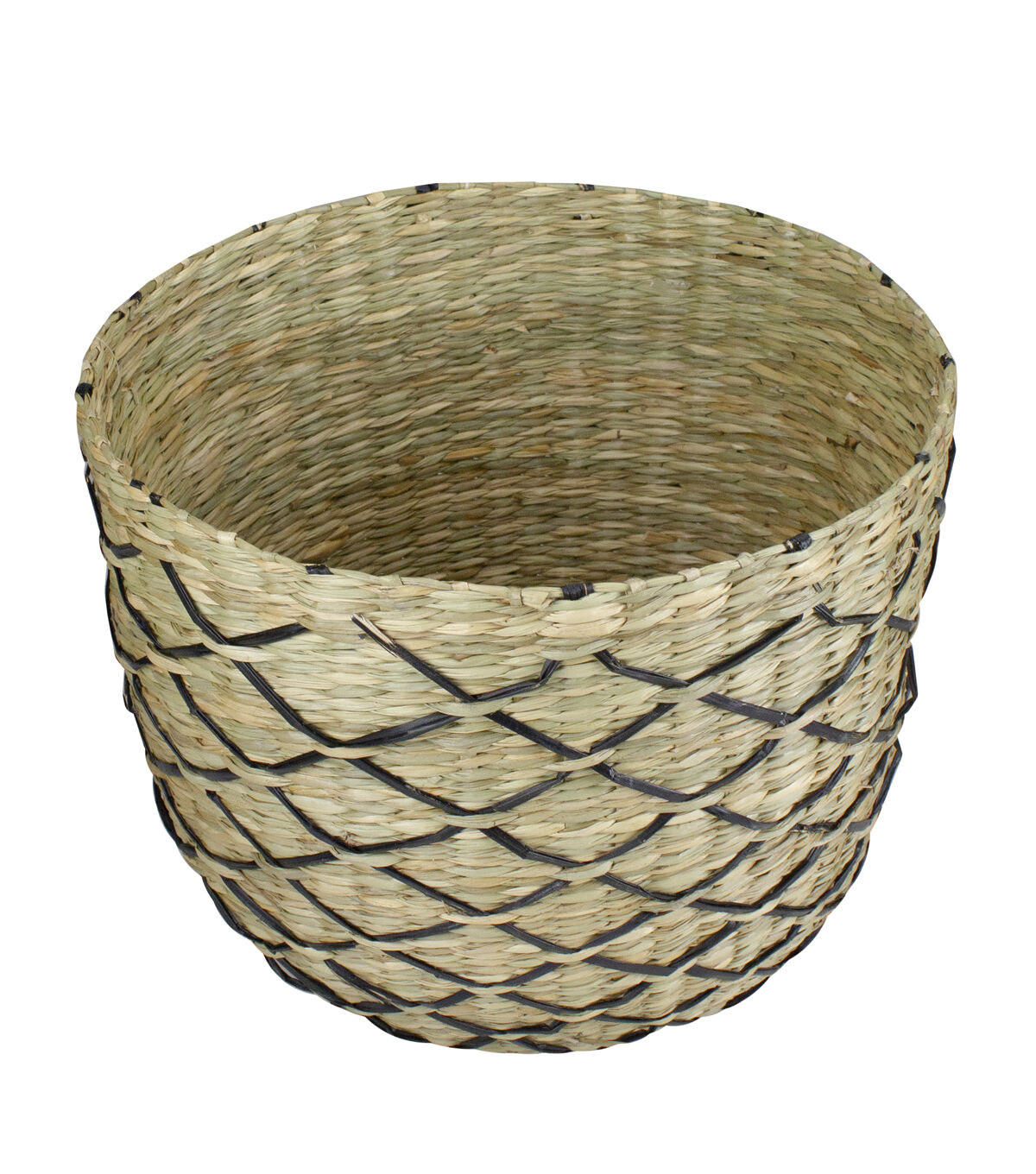 Northlight 12" Natural Brown & Black Woven Lattice Seagrass Basket