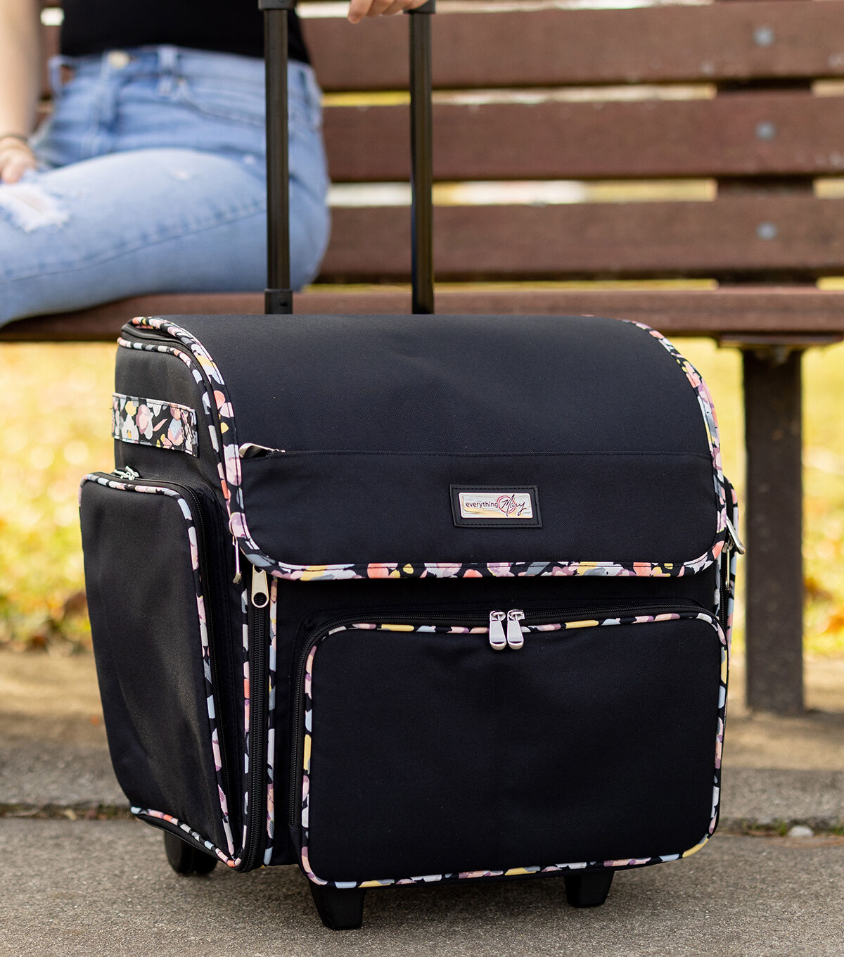 Everything Mary 18" Floral on Black Collapsible Rolling Craft Bag